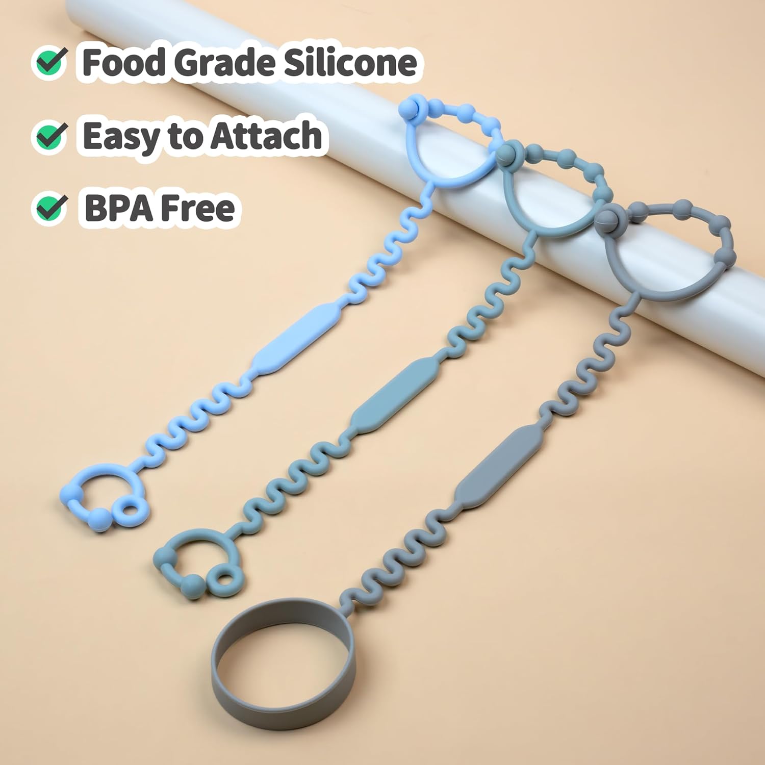 - ✔Crib-Ready: The package includes 2 toy straps and 1 toddler bottle holder in 3 different colors including gray, blue, and dark gray, the wavy design enhances visual, motor, and sensory development, easy to carry, and the baby toy straps can entertain your baby on the go.
