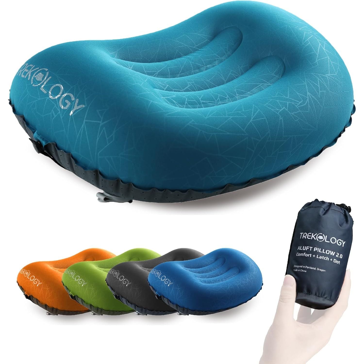 - TREKOLOGY Ultralight Inflatable Camping Travel Pillow - ALUFT 2.0 Compressible, Compact, Comfortable, Ergonomic Inflating Pillows for Neck & Lumbar Support While Camp, Hiking, Backpacking