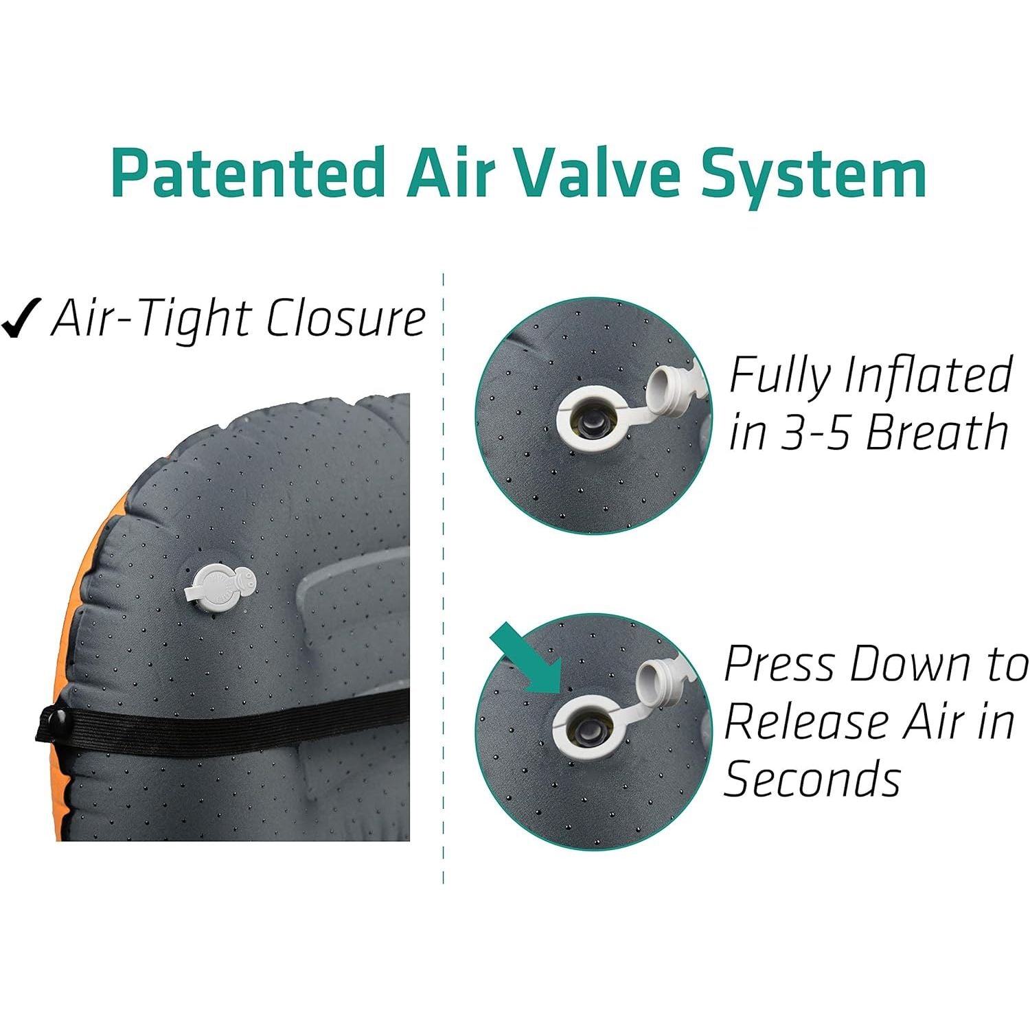 - EASY TO INFLATE/DEFLATE: The blow-up pillow inflates with 5-8 breaths, and the quick deflate button releases air in seconds—making this inflatable pillow a breeze to pack. inflate the pillow to your preferred firmness.