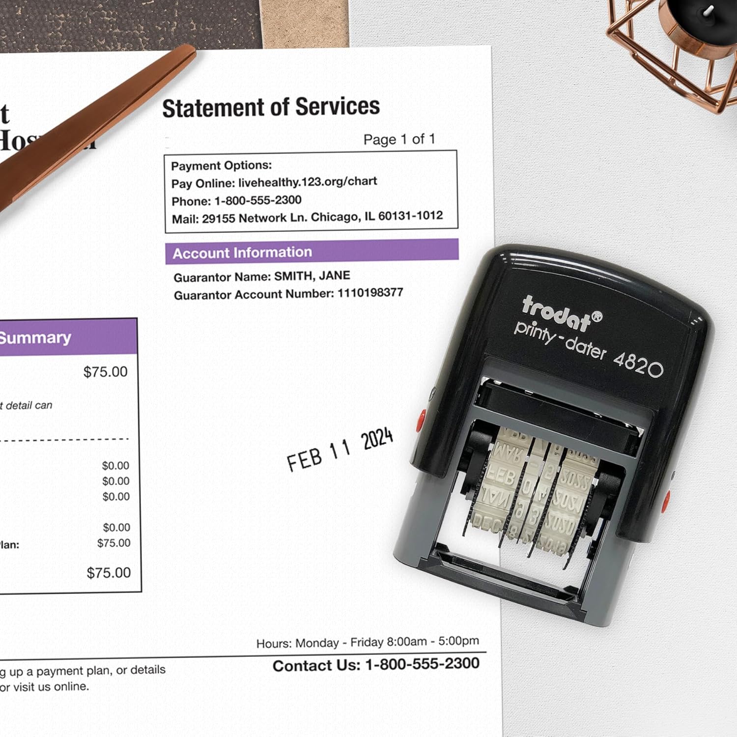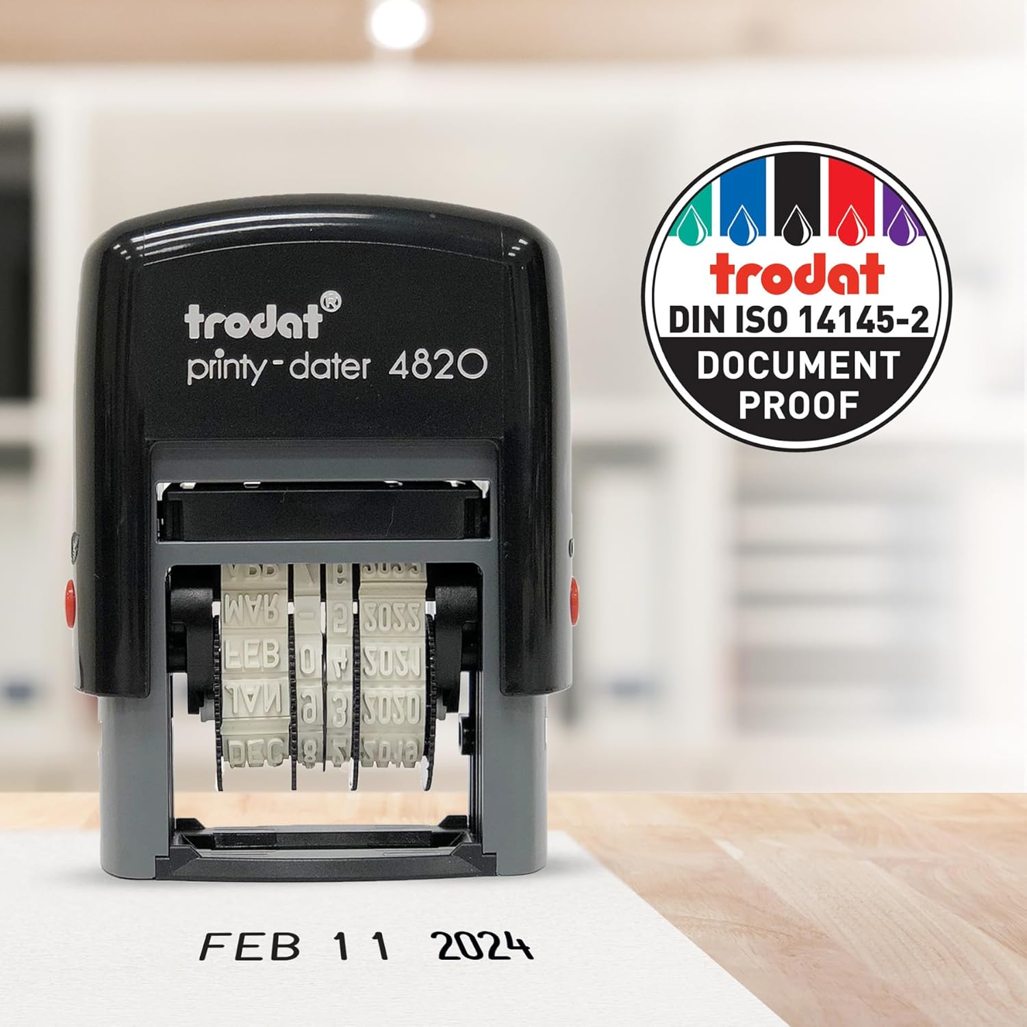 - Trodat Printy 4820 Date Stamp, Self-Inking Stamp for Professional and Personal Applications, 3/8” x 1-¼”, Eco-Friendly Climate Neutral Product (Black)