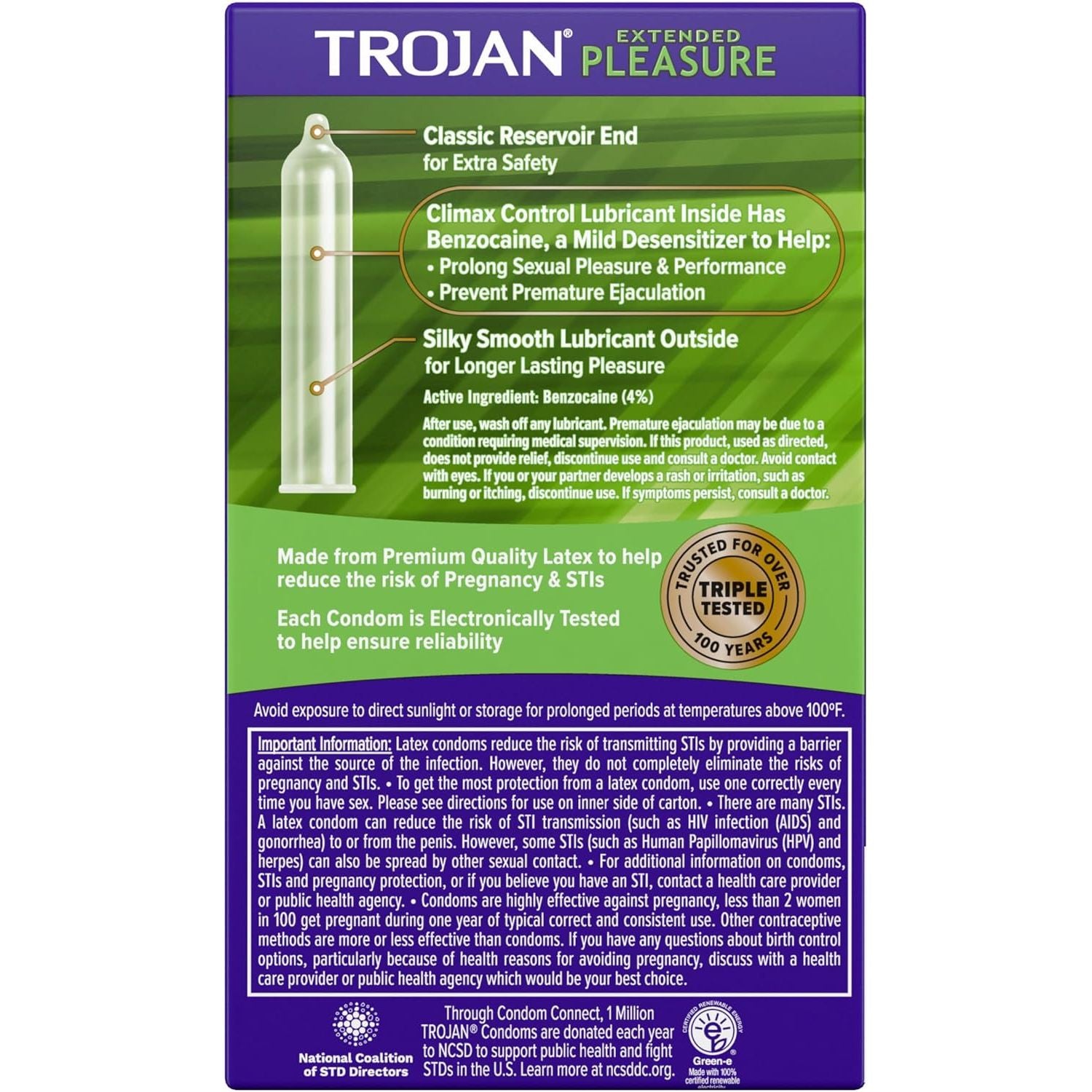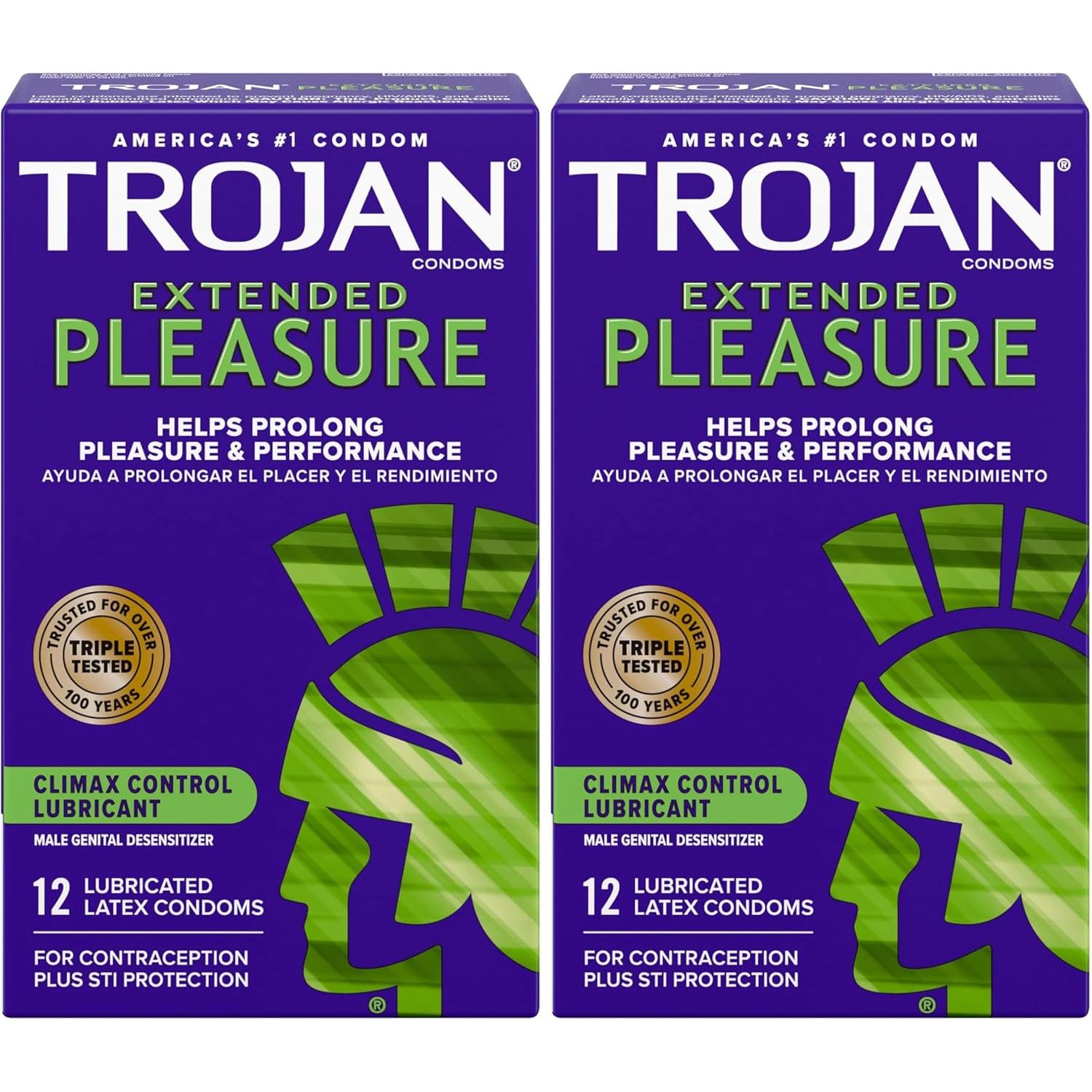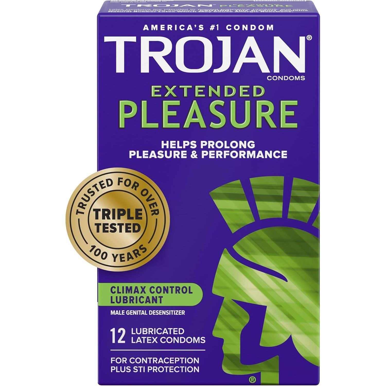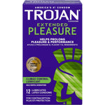 - Includes: TROJANS 12 pack box of TROJAN EXTENDED PLEASURE Climax Control Extended Pleasure Condoms with a special lubricant inside