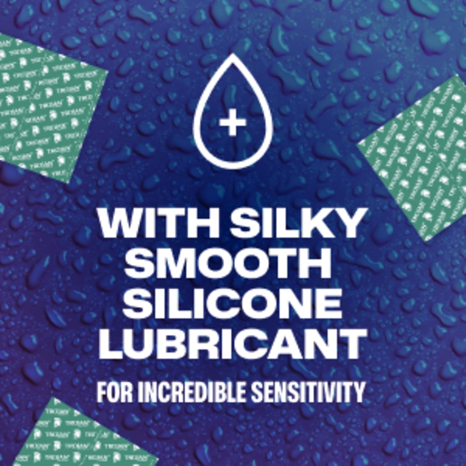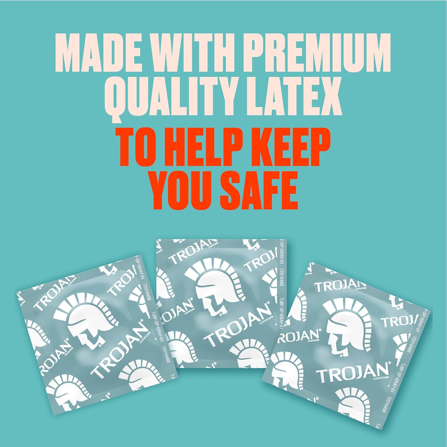 - These lubricated latex TROJAN condoms feature a silky-smooth lubricant to help provide heightened sensitivity and comfort every time you play and allow you to get closer to your partner without compromising on protection and safety