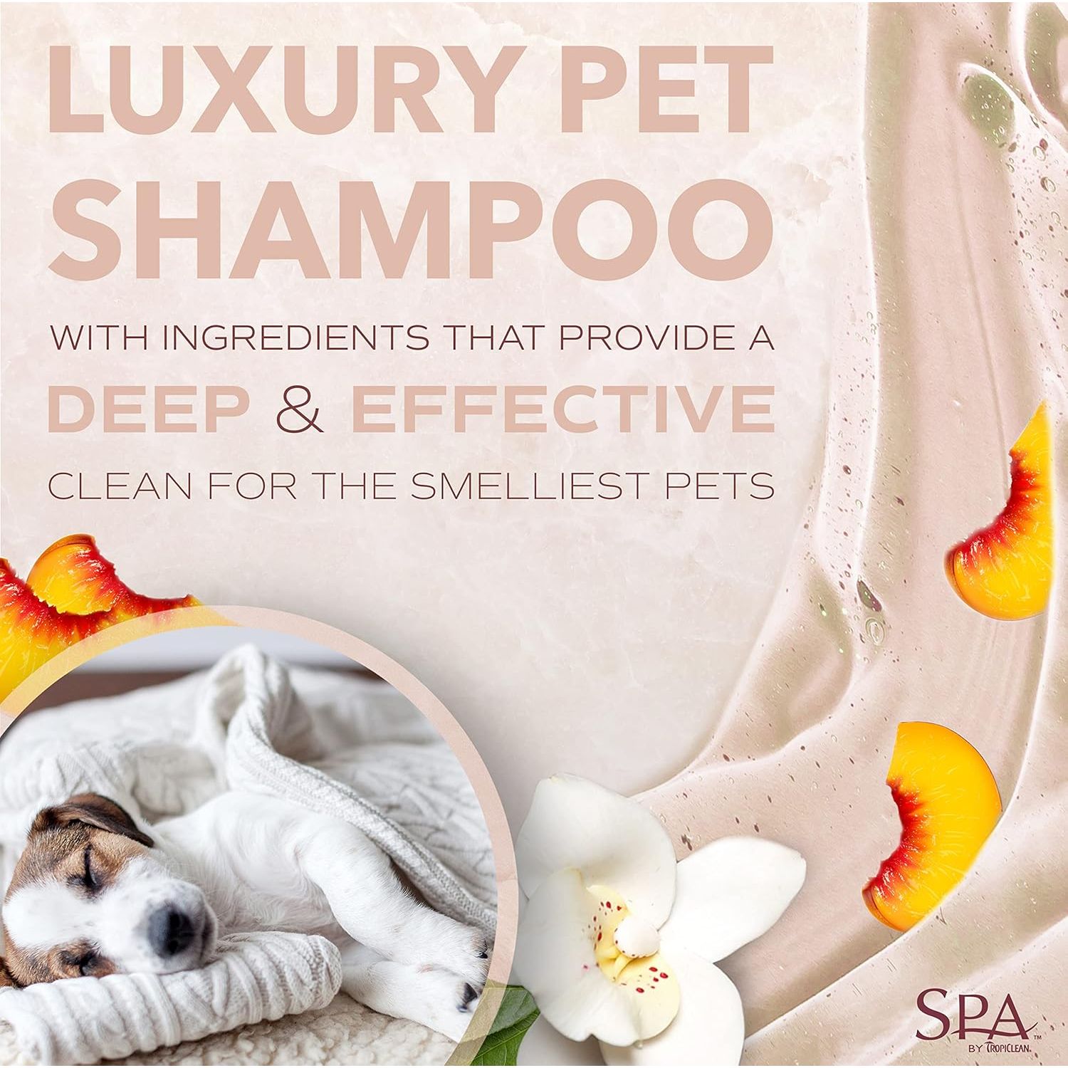 Spa your pets luxurious bathing option to make bath time a spa-like experience. One bath will leave your pet smelling luxurious with top notes of vanilla & cucumber and warm base notes of amber and lily of the valley.