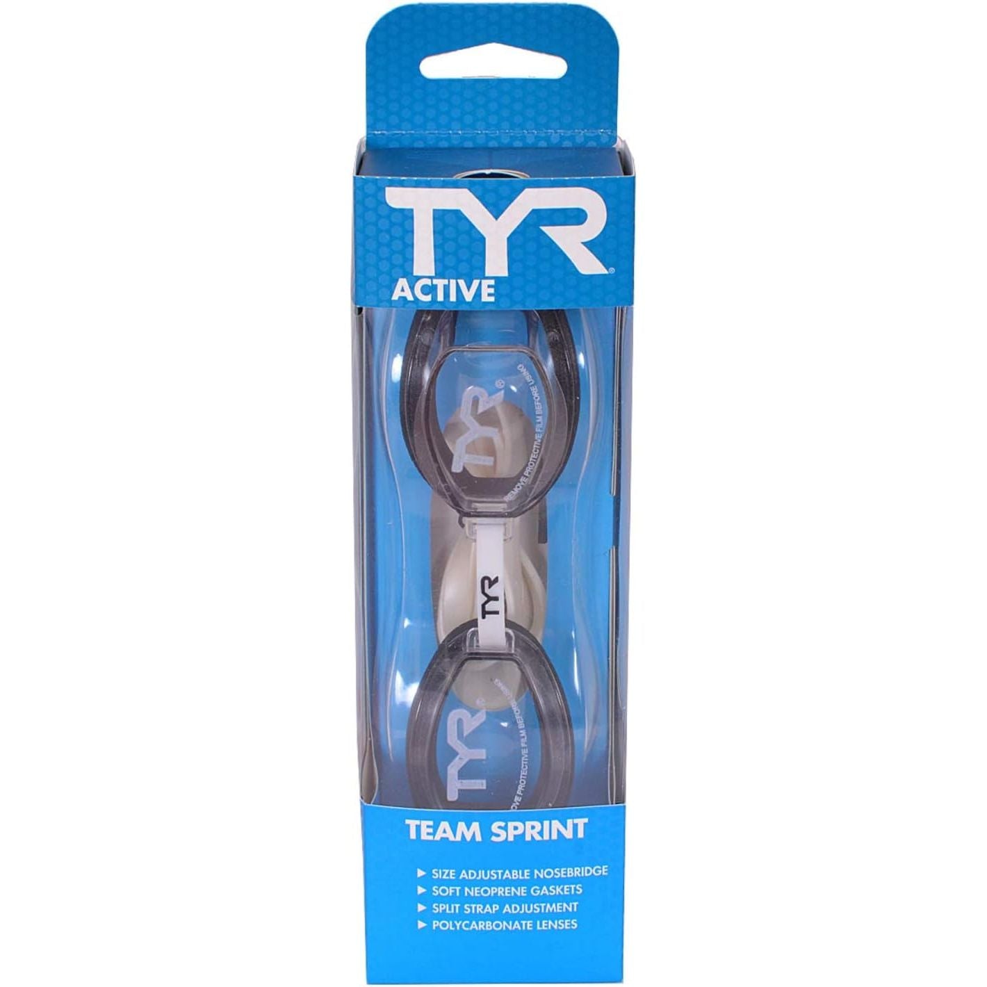 The Tyr Team Sprint Swim Goggle features low profile, wide angle socket lenses, comfortable foam gaskets, easy adjust nosepiece, split rubber headstrap and UV protection. Excellent fit for children and adults. Recommended for both training and racing.