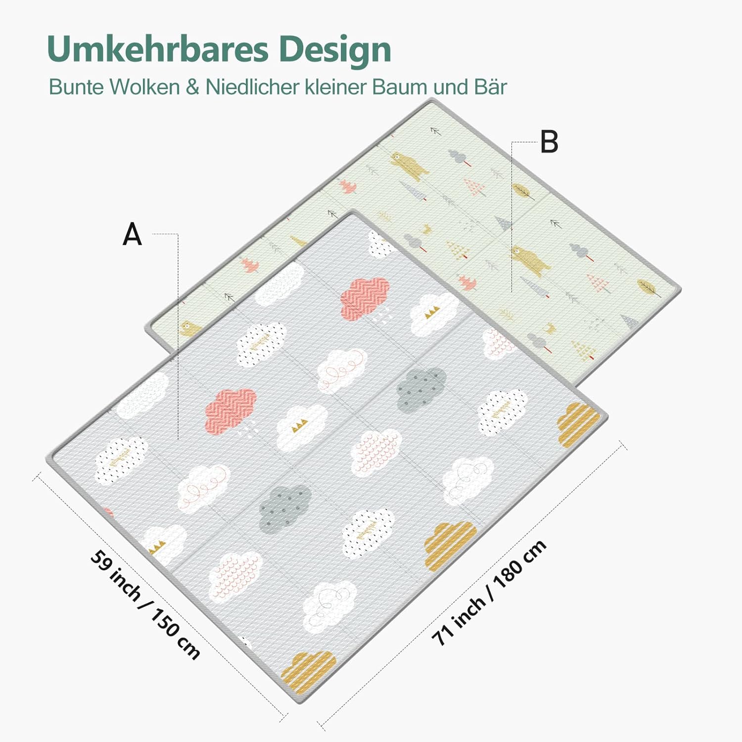 - UANLAUO Foldable Baby Play Mat, Extra Large Waterproof Activity Playmats for Babies,Toddlers, Infants, Play & Tummy Time, Foam Baby Mat for Floor with Travel Bag (Cloud(71x59x0.4inch))