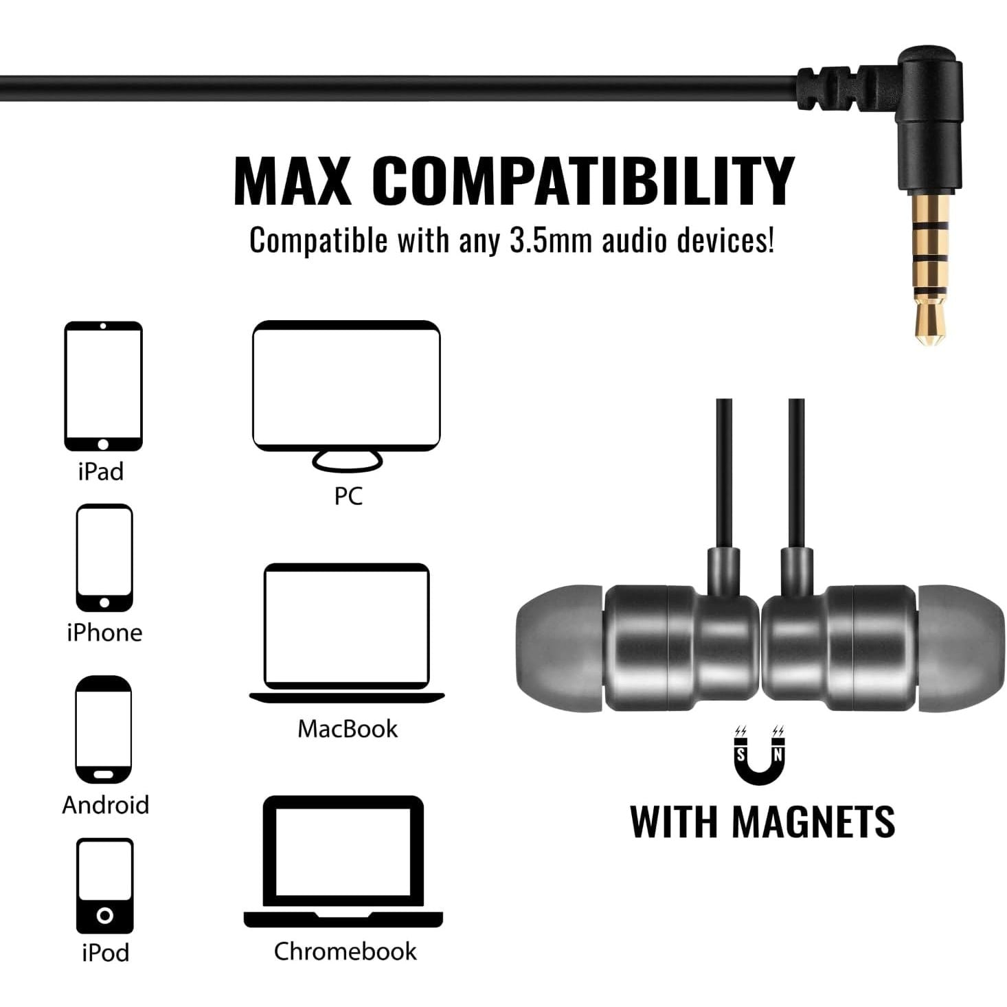 - 🎵【48 Ω HIGH QUALITY EAR PHONES WITH MAGNETS】Thanks to our 48 Ω speakers for mic, the sound is brilliant and intense, with passive noise isolation. On the inside, the metallic shell of these corded headphones also have two magnets that you can use to clip them around your neck or easily pack them together in their handy pouch