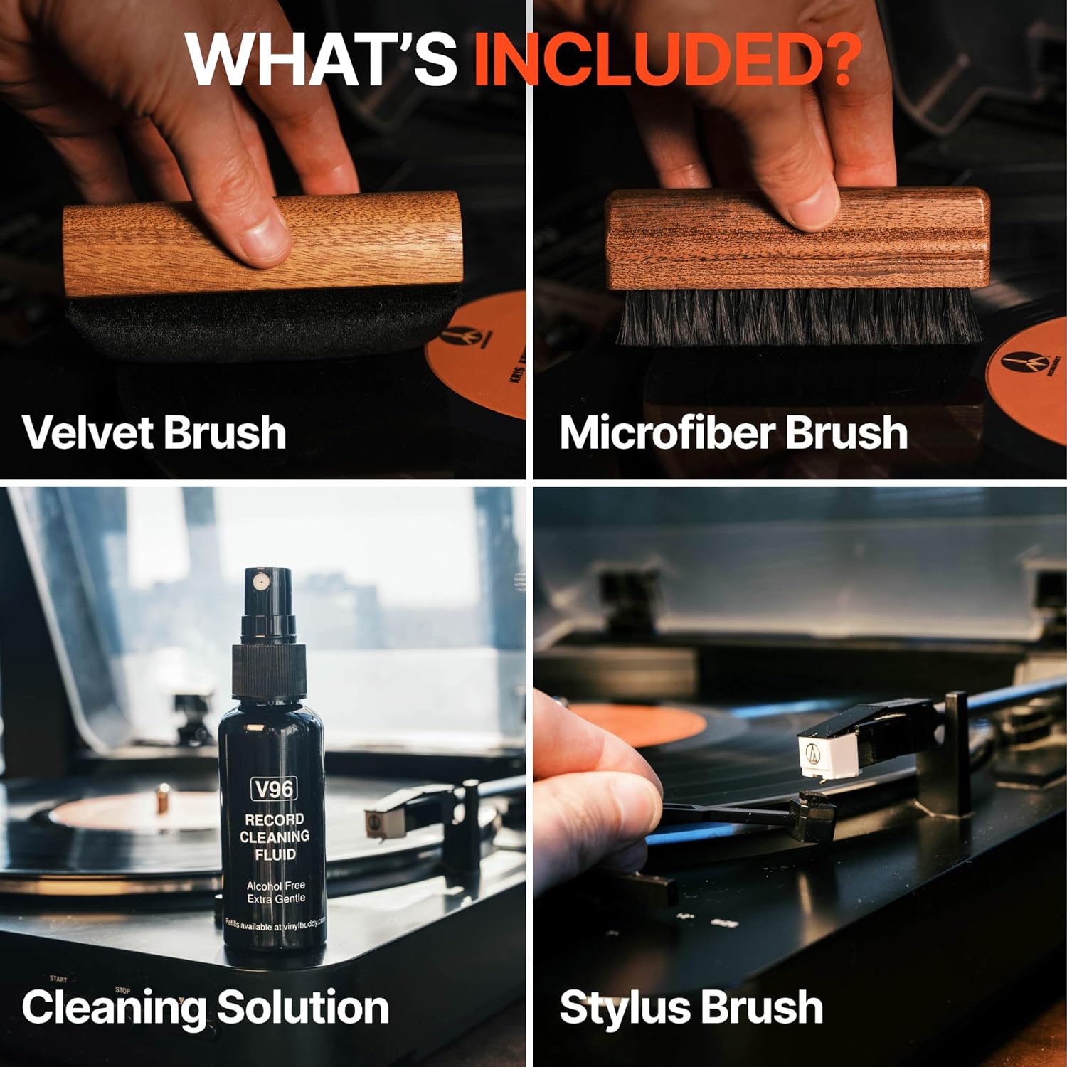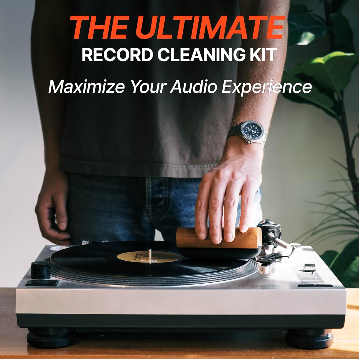 - Ultimate 5-Piece Vinyl Record Cleaning Kit | Includes: Record Cleaner – Velvet, Microfiber & Stylus Brush | Made from Premium Hardwood – Clean, Protect & Restore Your LPs