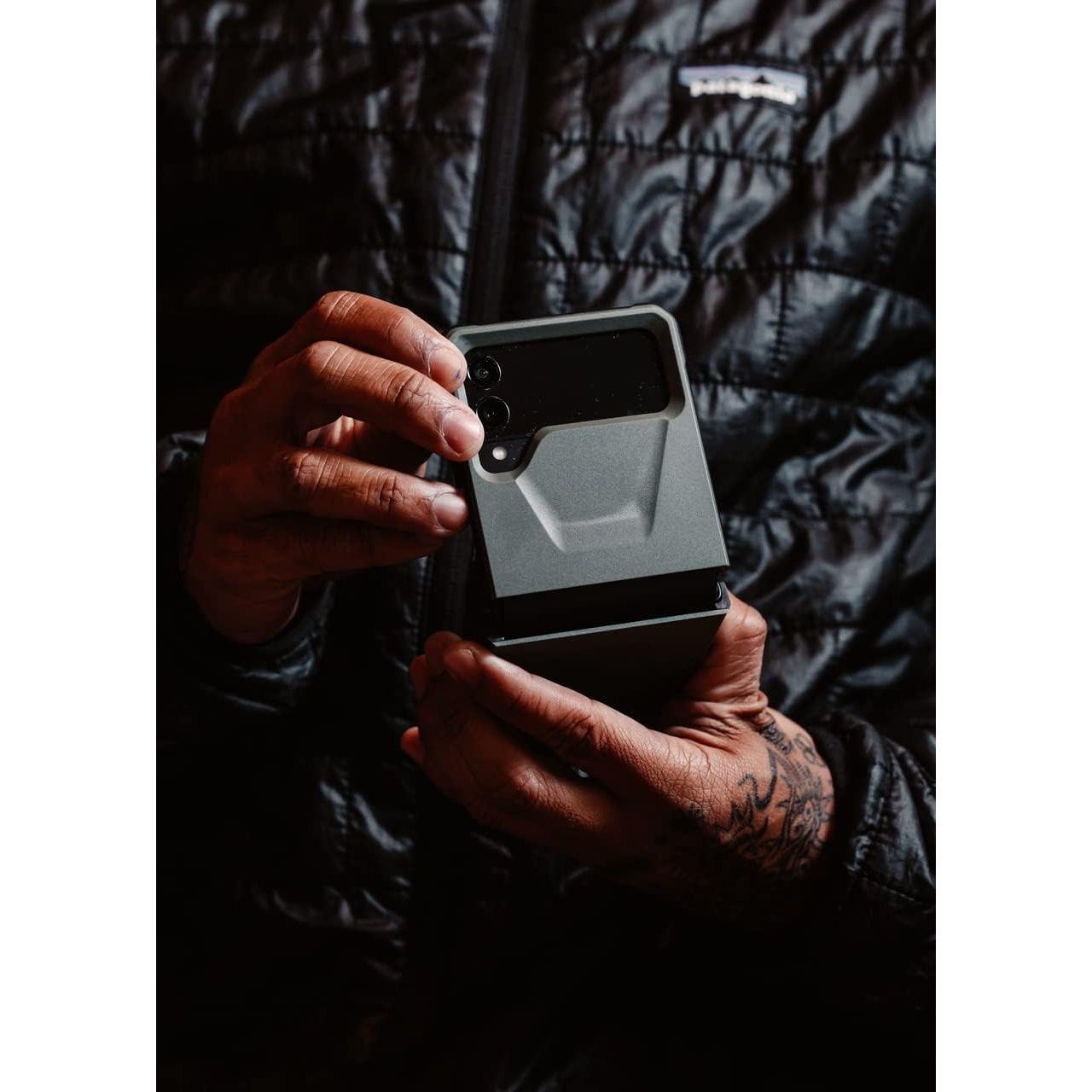 • Form fitted hinge protection that moves with the device in both open and closed positions. Compatible with Wireless Charging and NFC Payments.