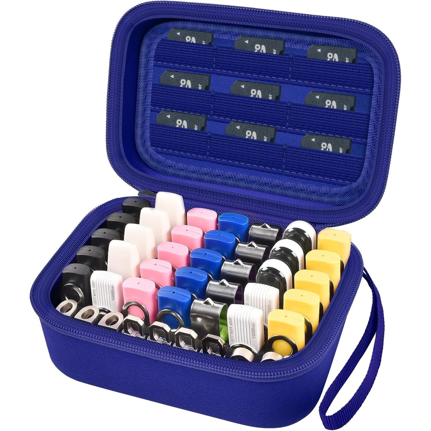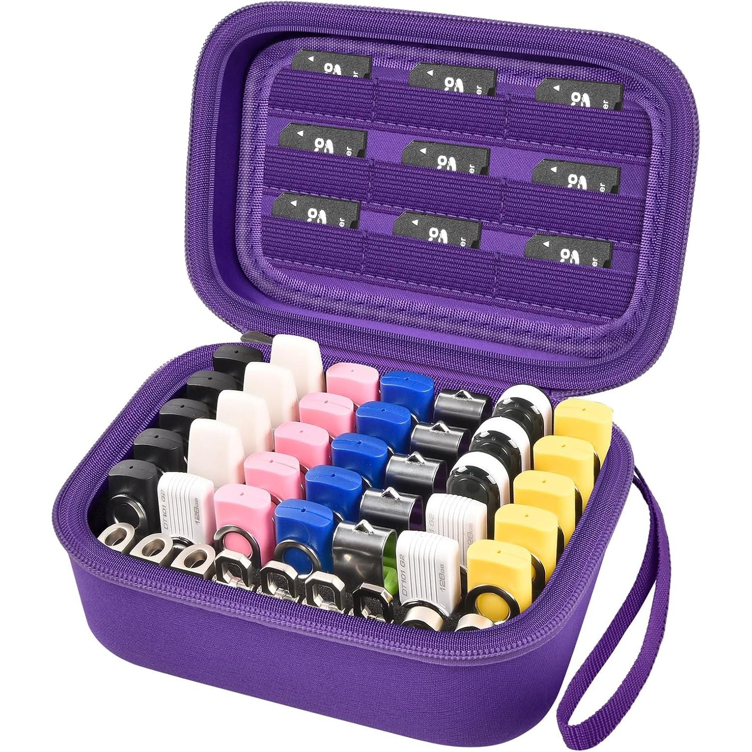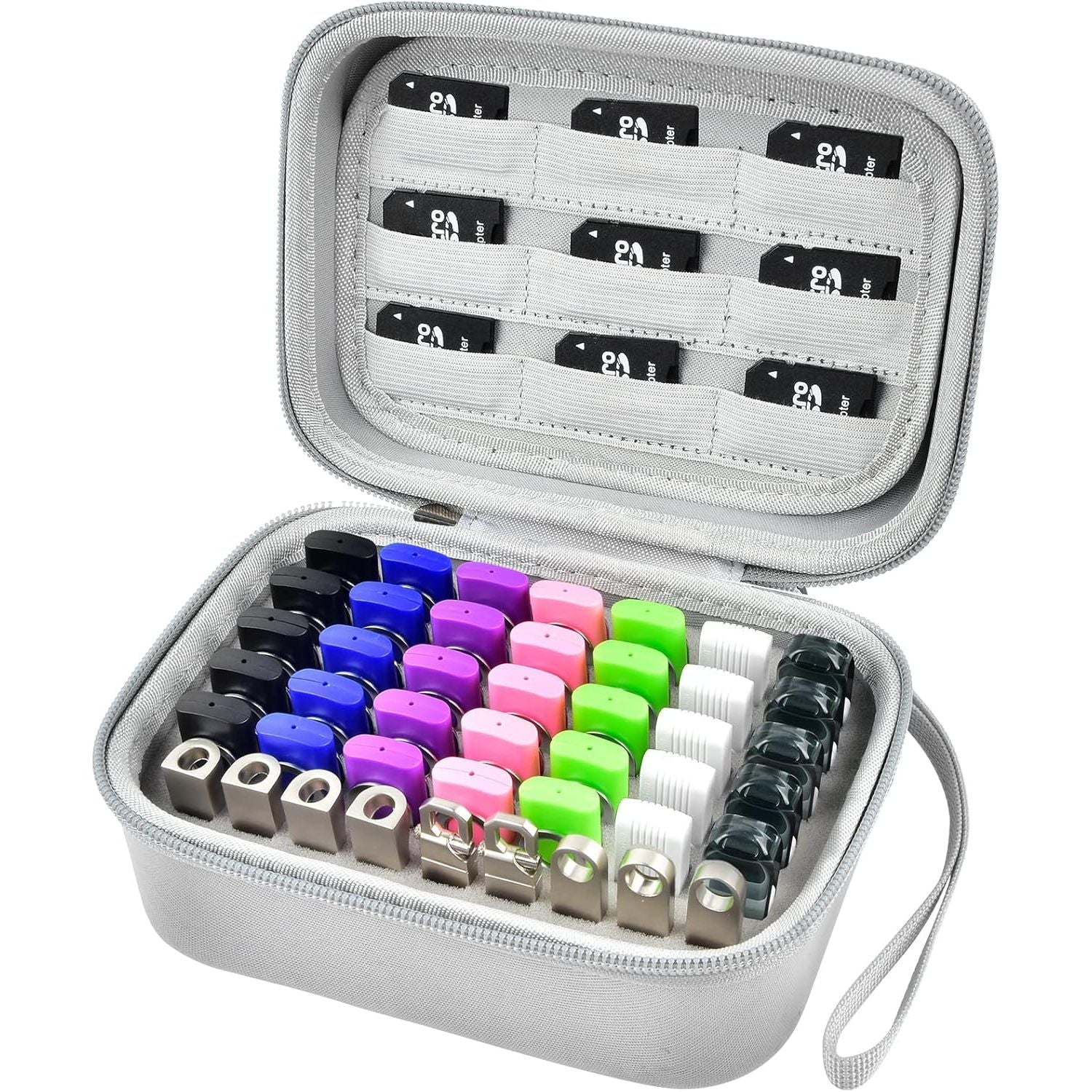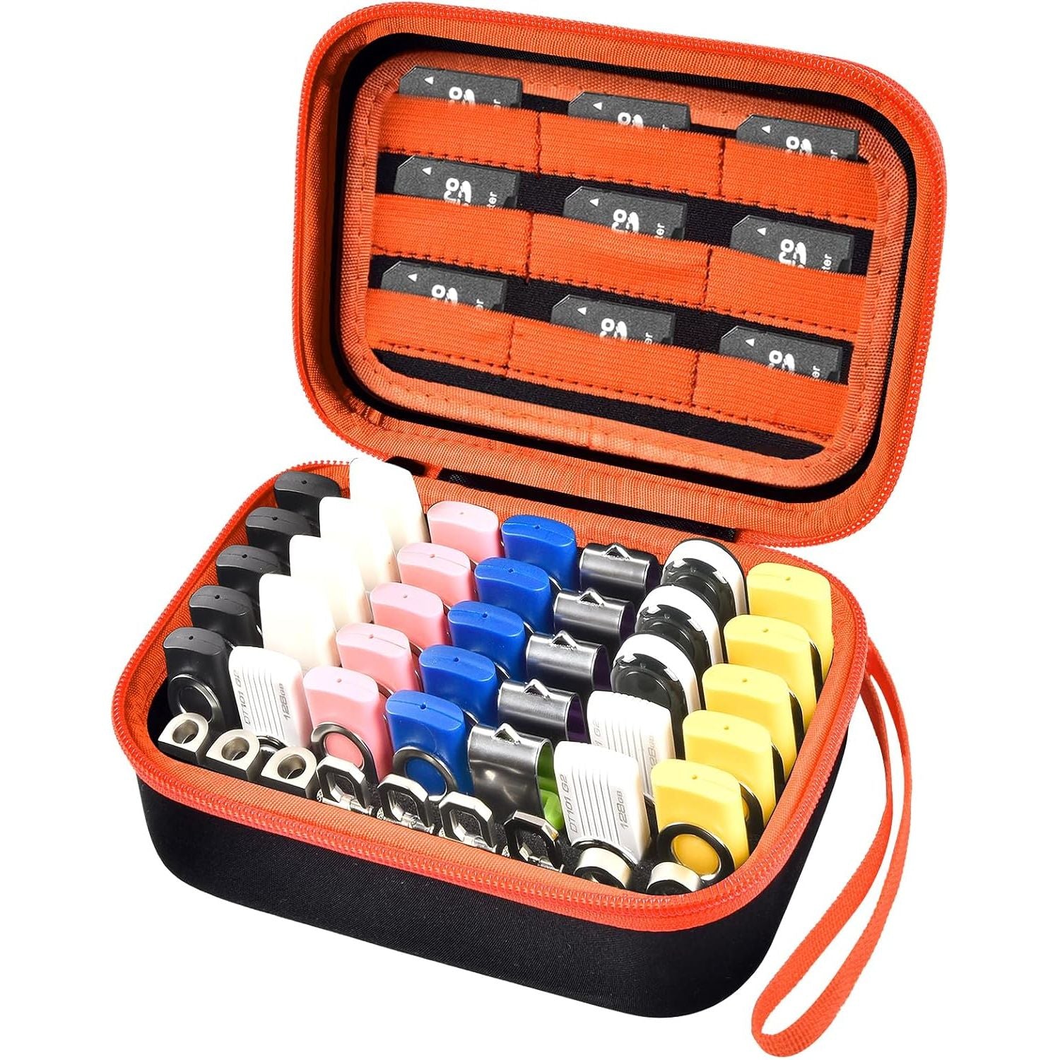 • Convenient design for Flash Drive Organizer Case: Compact and lightweight, easily for you to put it in your bag, backpack and luggage, with strong hand strap easy for you to take all your USB sticks and memory cards everywhere, sturdy zipper design is helpful to flat without putting pressure on thumb drives,Vertical plug-in design easy for you to insert or remove your memory sticks.