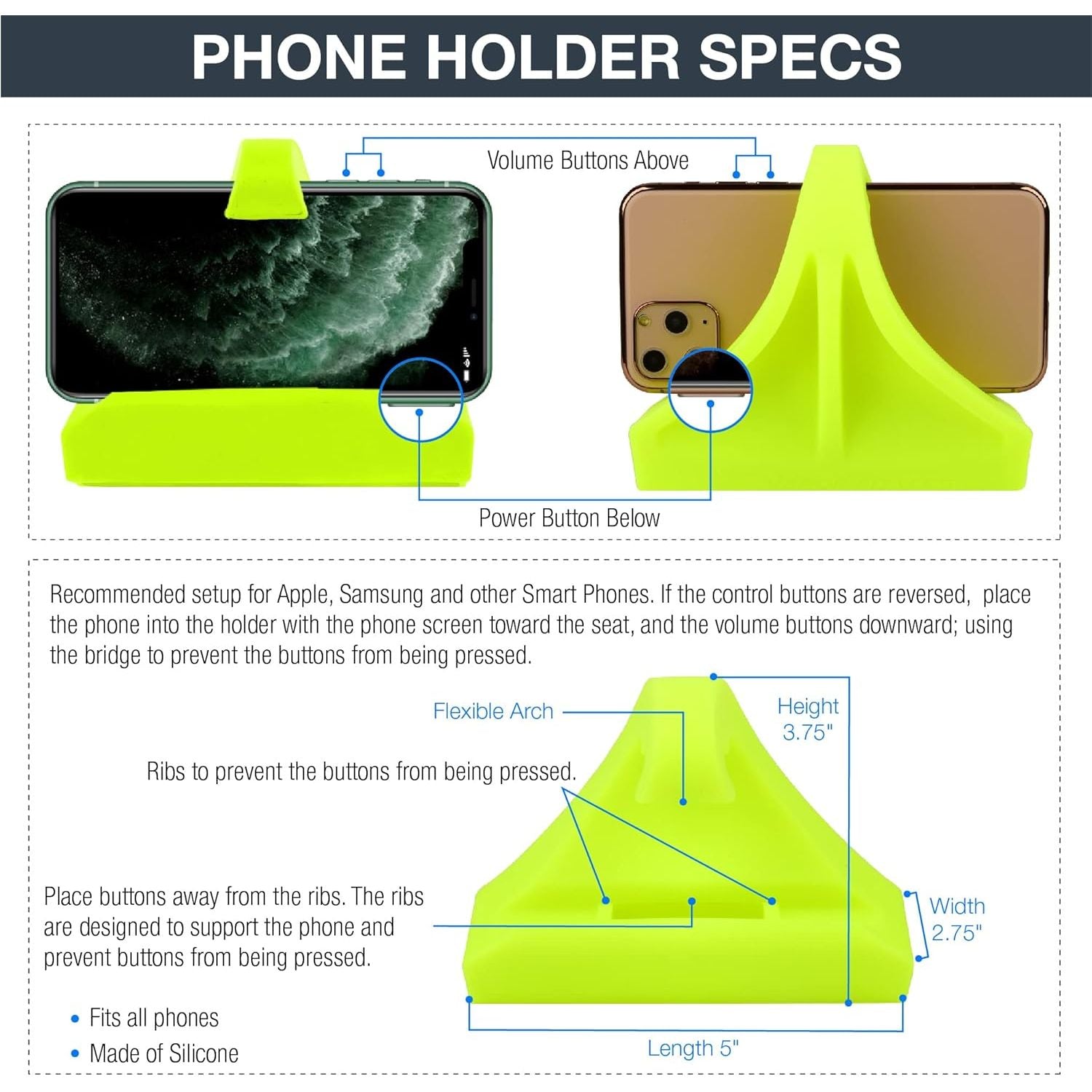 • Patent Pending Design: The silicone smartphone holder slides on top of the compatible Concept2 PM5 monitor and fits snugly. It is reinforced at the back with a third rib for stability. This product comes in black, neon yellow, pink, khaki green or red and is made of high quality silicone.