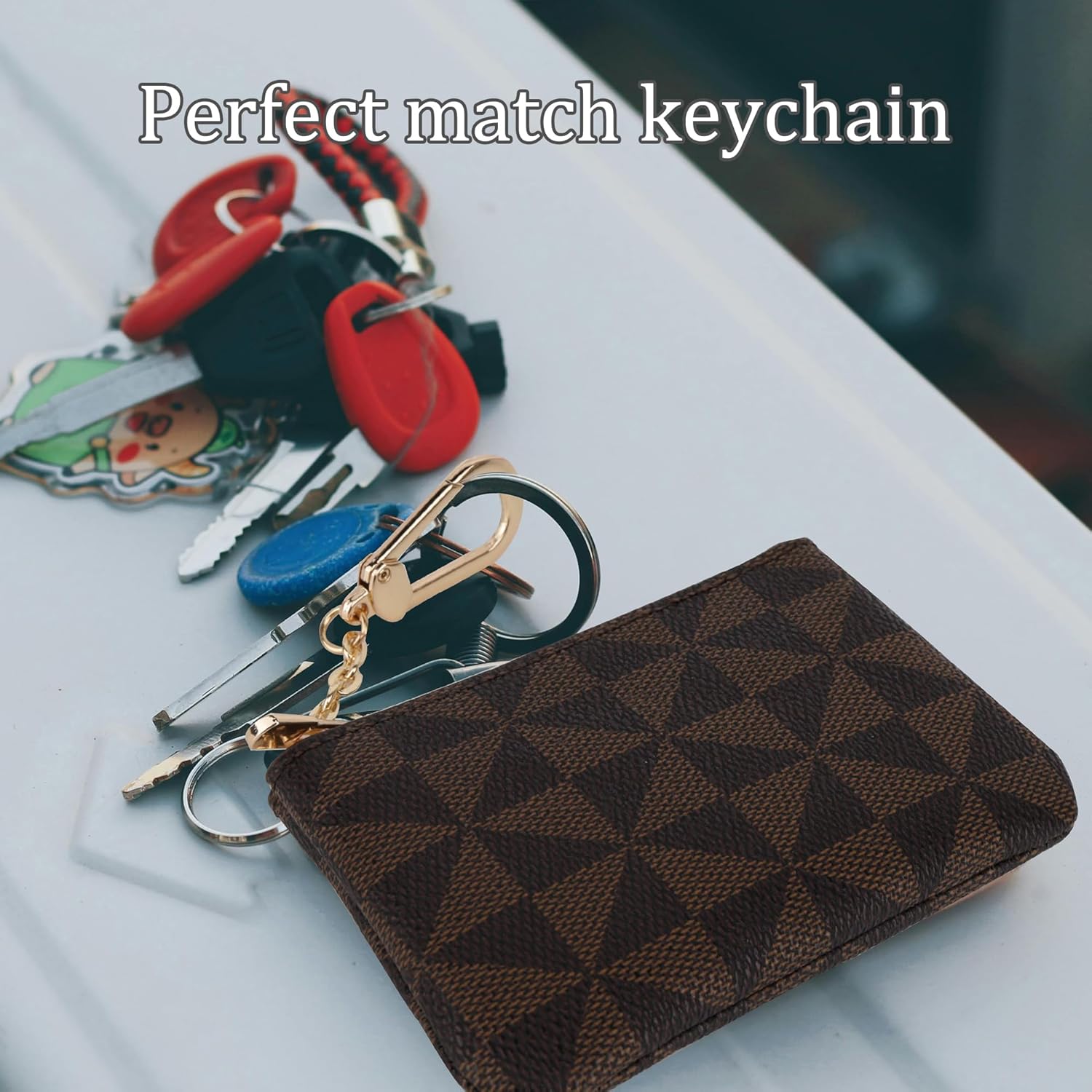 - Veki Coin Purse Change Mini Purse Wallet With Key Chain Ring Zipper for Men Women Fashionable Bag Key Chain Pendant Leather Classic Clutch Purse(Brown)