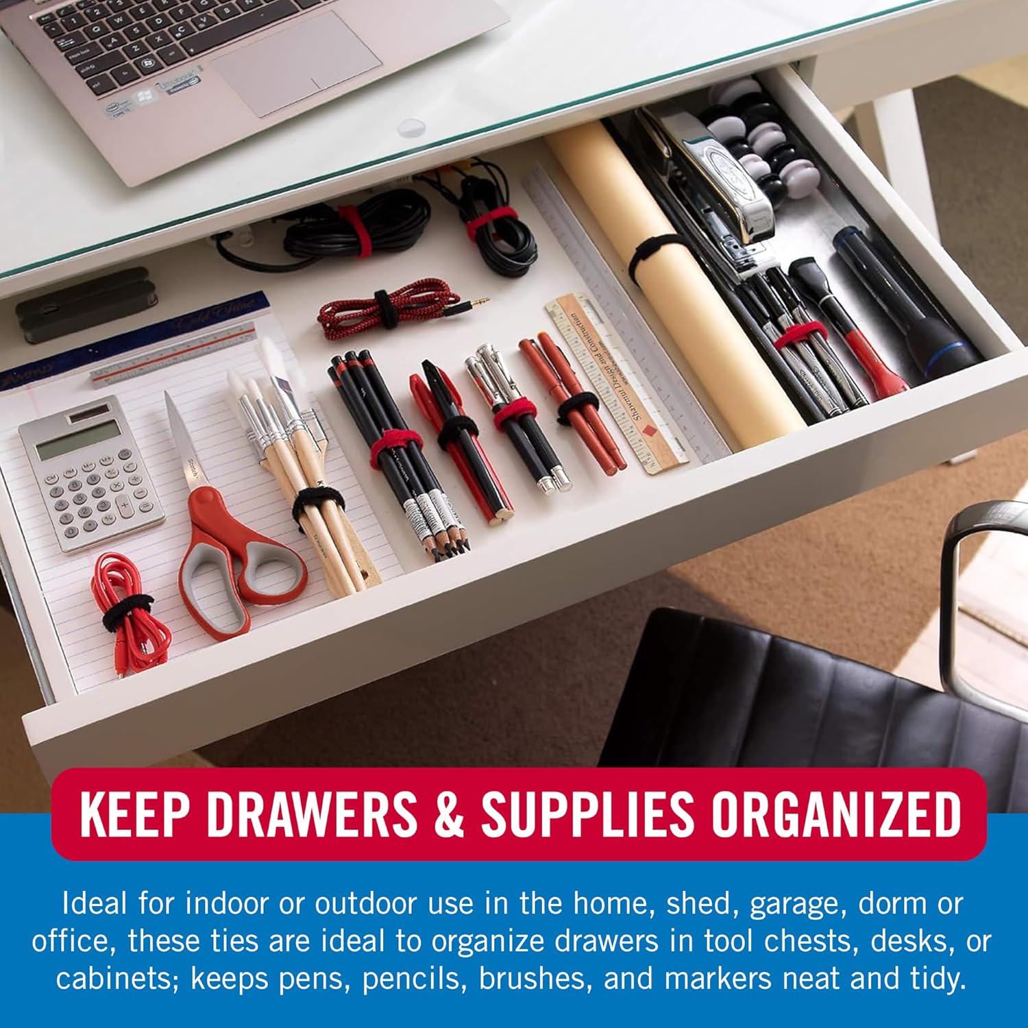 - KEEP DRAWERS AND SUPPLIES ORGANIZED: Ideal for indoor or outdoor use in the home, shed, garage, dorm or office, these ties are ideal to organize drawers in tool chests, desks, or cabinets; keeps pens, pencils, brushes, and markers neat and tidy
