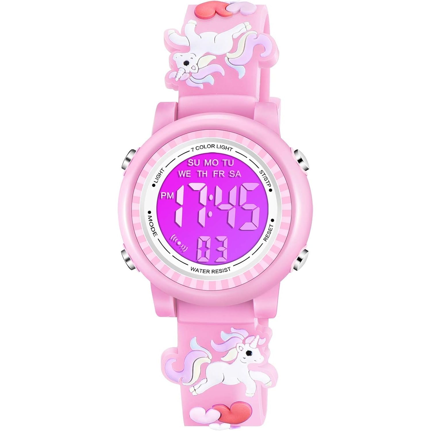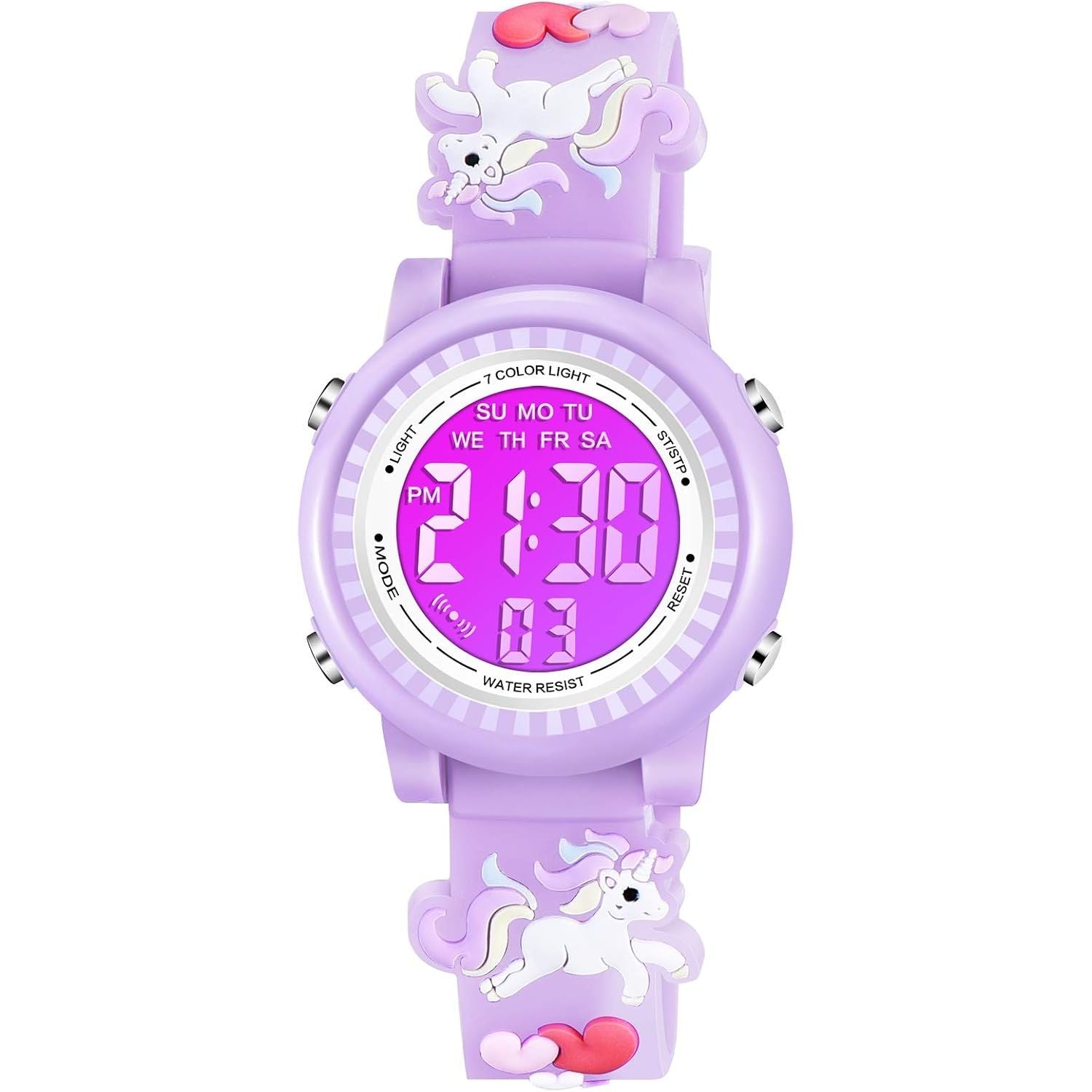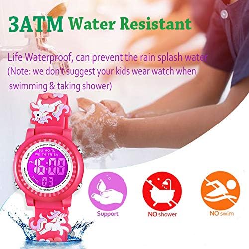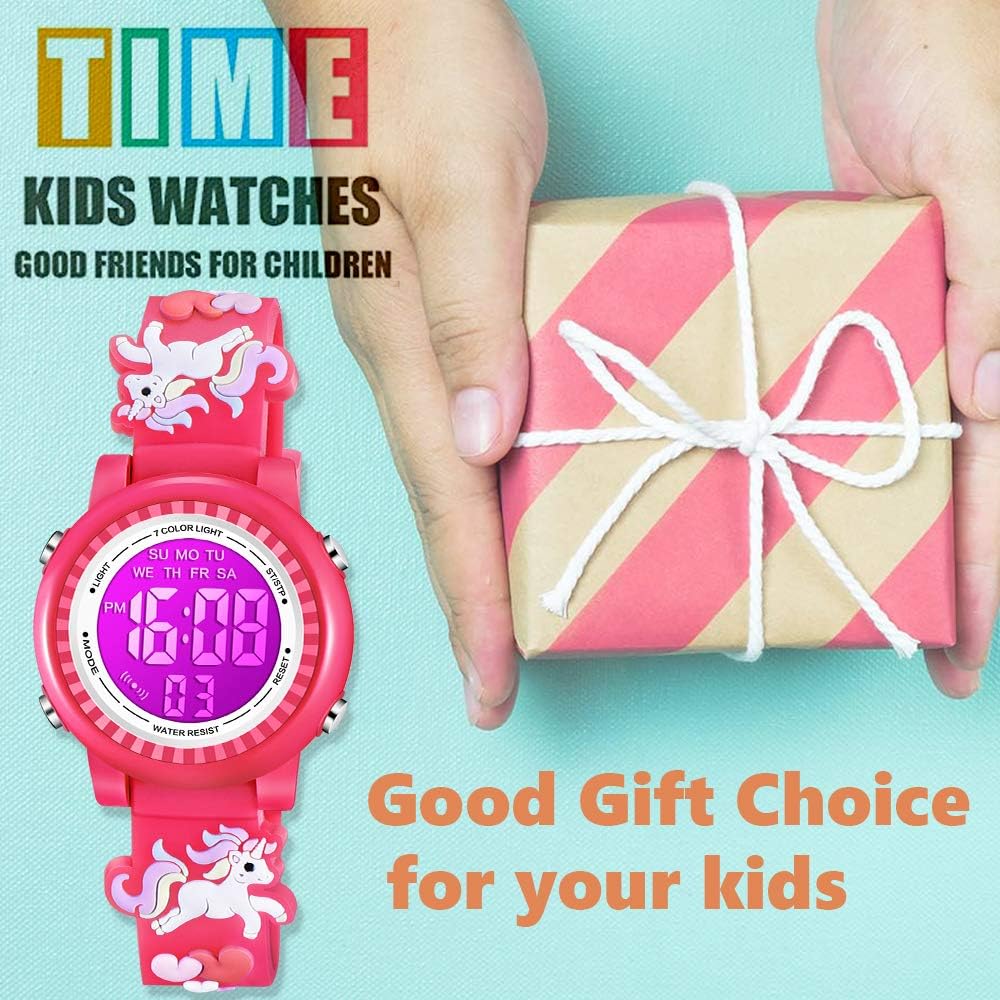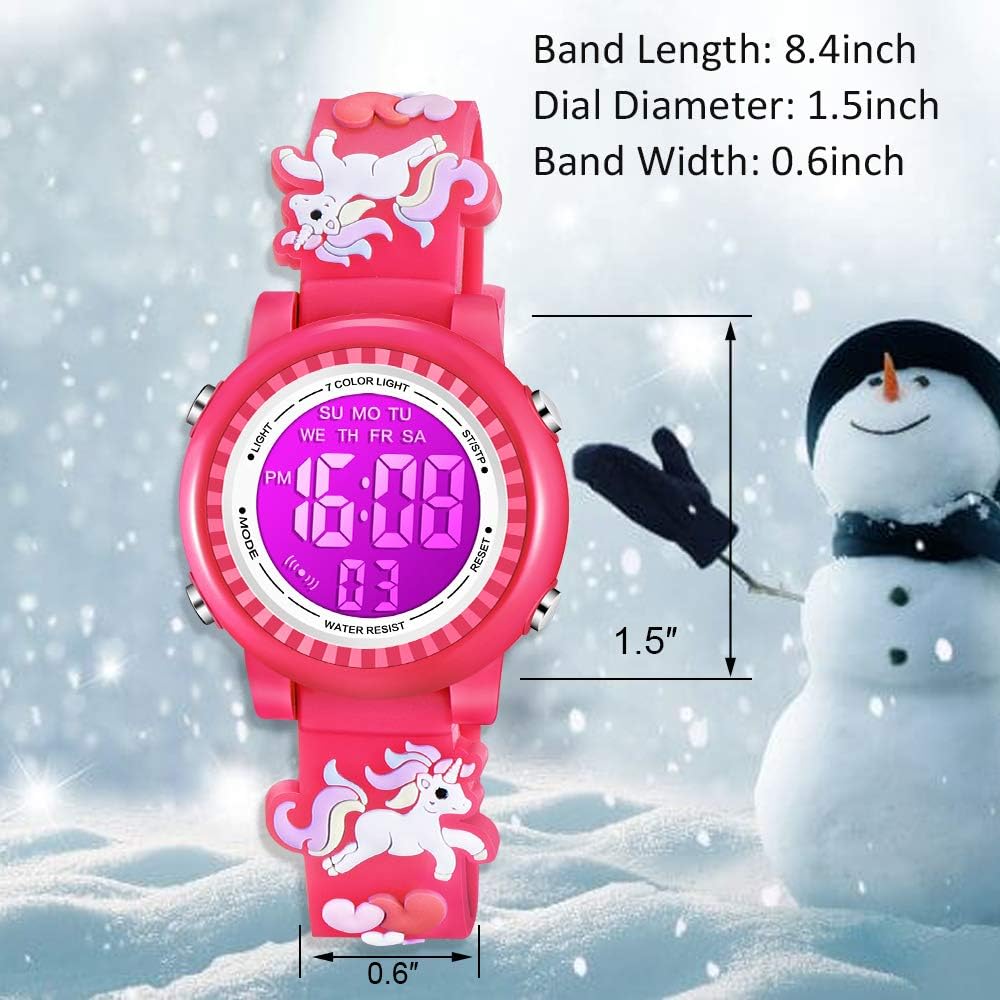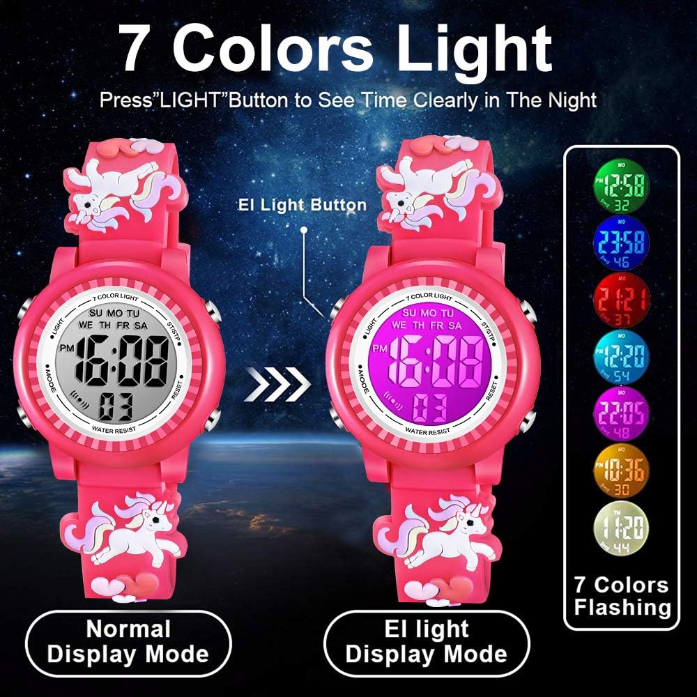 - Venhoo Kids Watches 3D Cartoon Waterproof 7 Color Lights Toddler Wrist Digital Watch with Alarm Stopwatch for 3-10 Year Girls Little Child