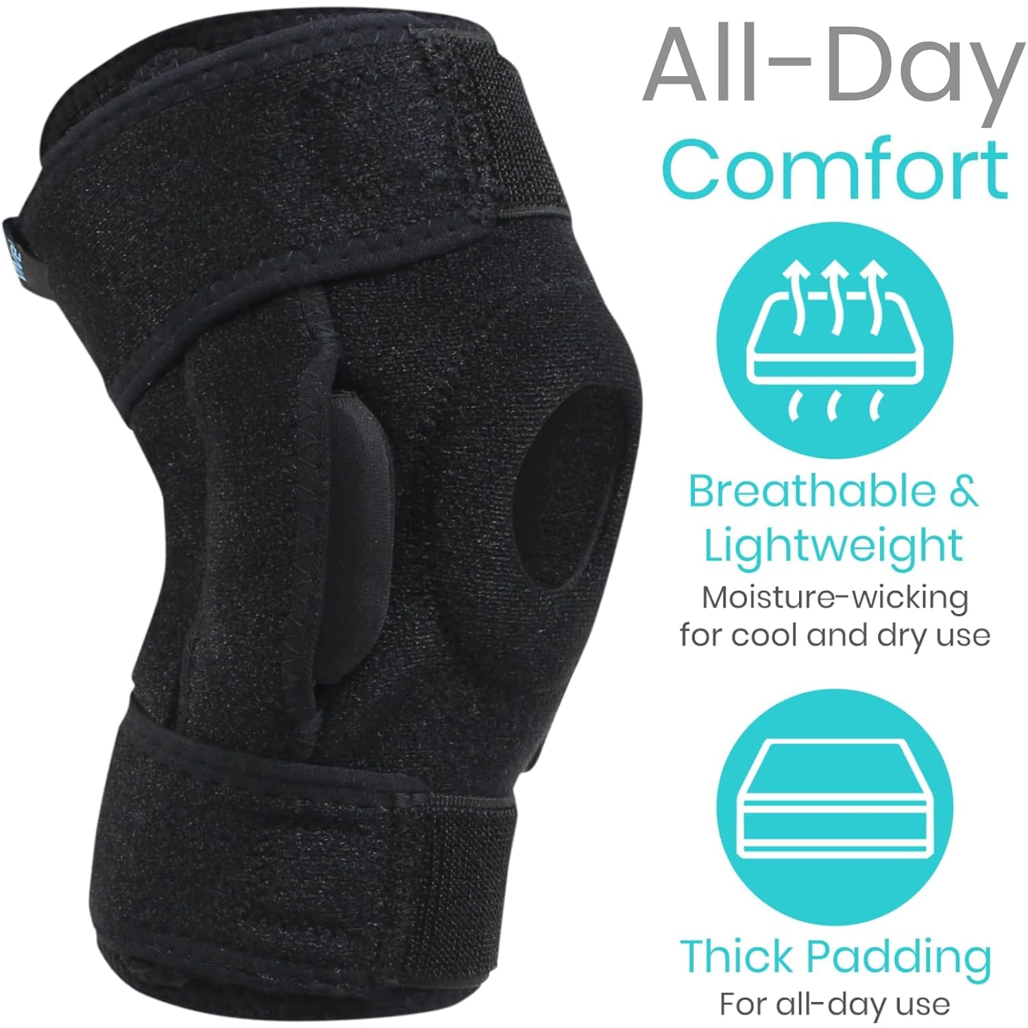 Vive Hinged Knee Brace - Relieves ACL, MCL, Meniscus Tear - Lightweight, Comfortable, Breathable Open Patella Wrap with Side Stabilizers - for Women & Men - Adjustable Strap for Tendonitis