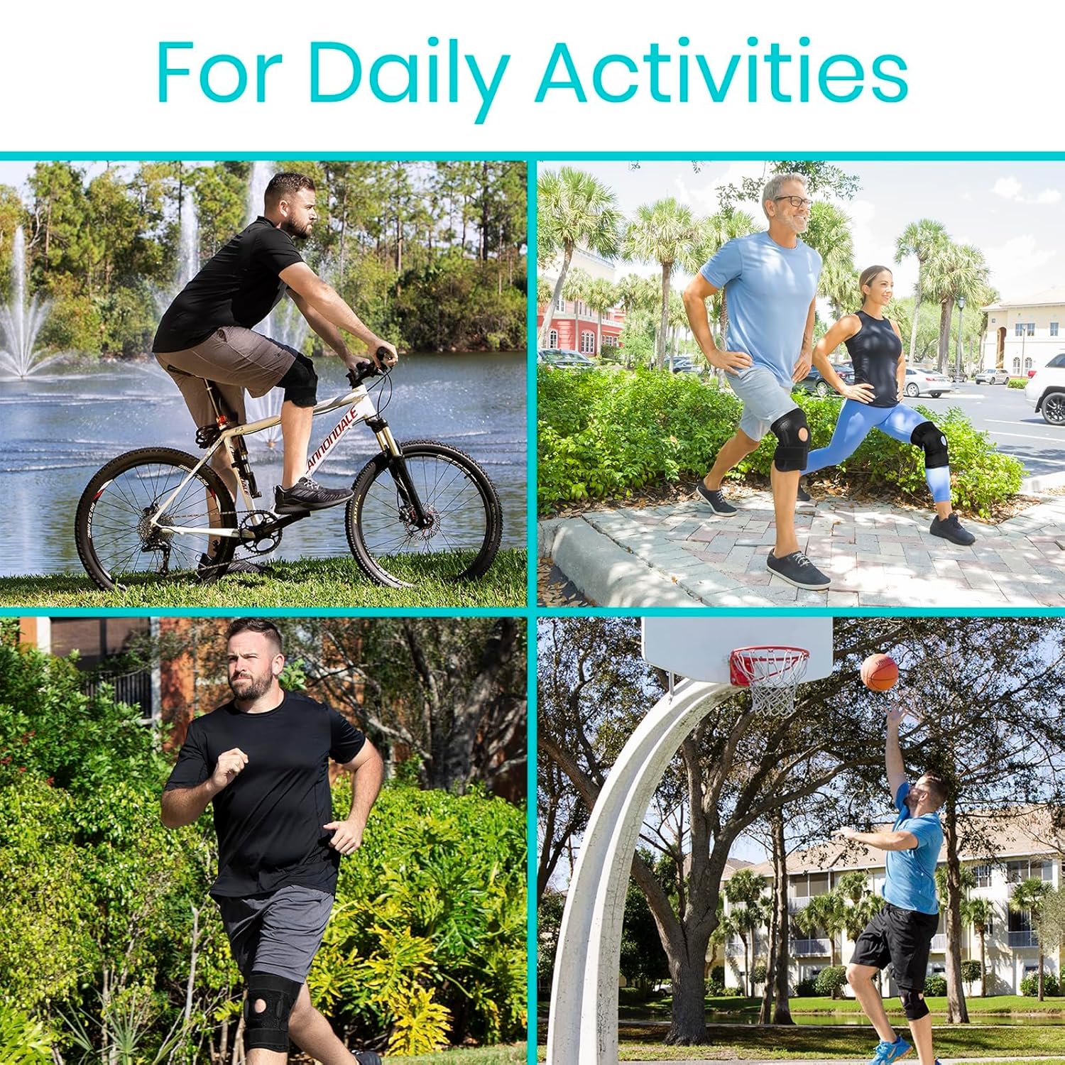 • ADJUSTABLE OPEN PATELLA DESIGN: Secured with four strong fastener straps, the Vive hinged knee brace easily adjusts to fit most adults. The open patella design relieves pressure on the knee cap while providing stabilizing support for ACL and MCL injuries, for helping relieve strains, sprains, and for patellar tracking.