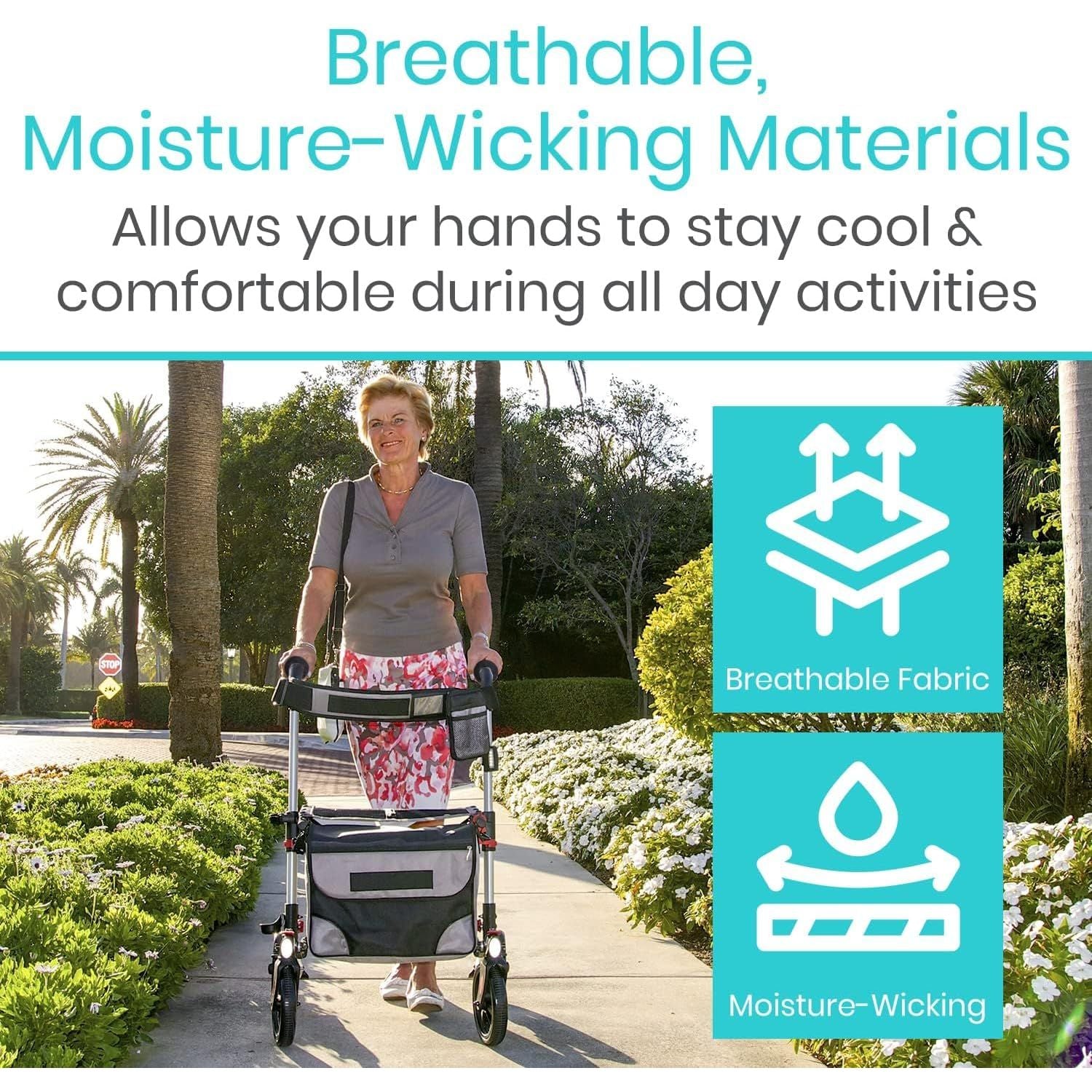 • BREATHABLE, MOISTURE-WICKING MATERIALS: Breathable, moisture-wicking materials allow your hands to stay comfortably cool and dry. The walker hand grips are also washable for added convenience.