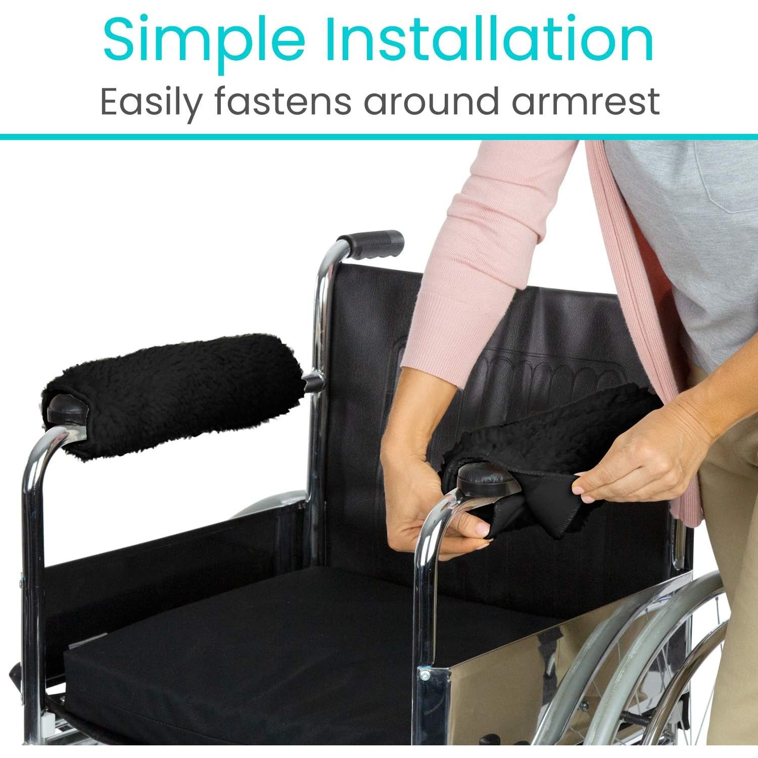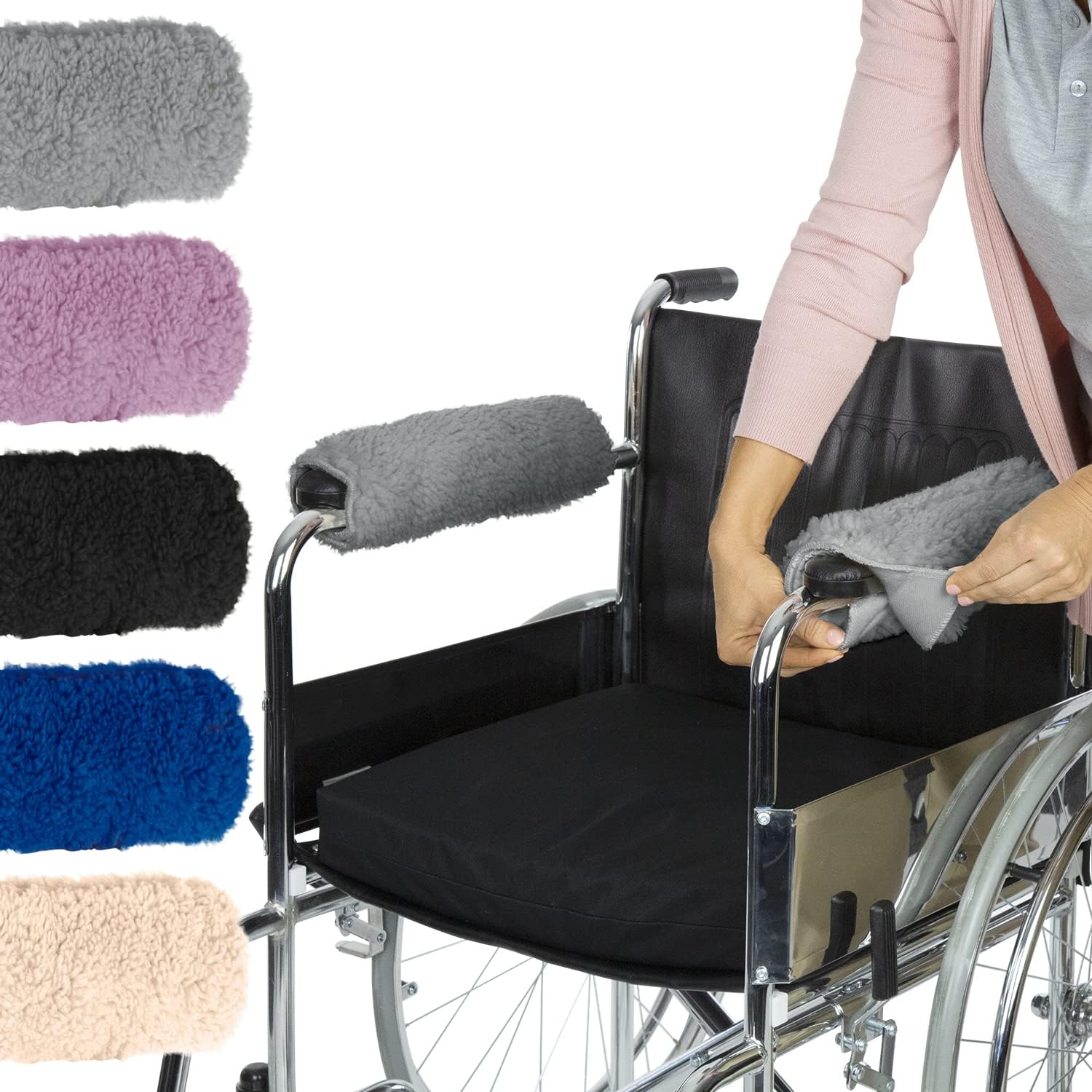 - Vive Wheelchair Armrest Covers (Pair) - Memory Foam Sheepskin Accessories Pads for Transport Electric Wheel Chair Arm Rests - for Adults, Seniors, Handicapped - Soft Support Cushion for Mobility Aids