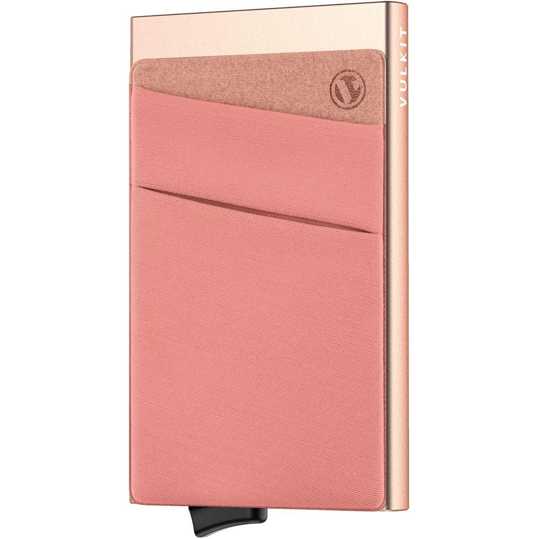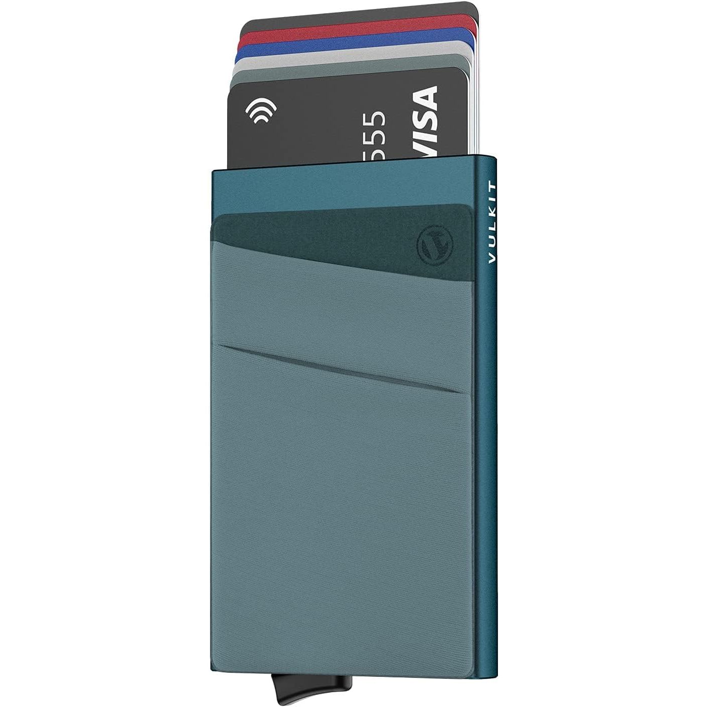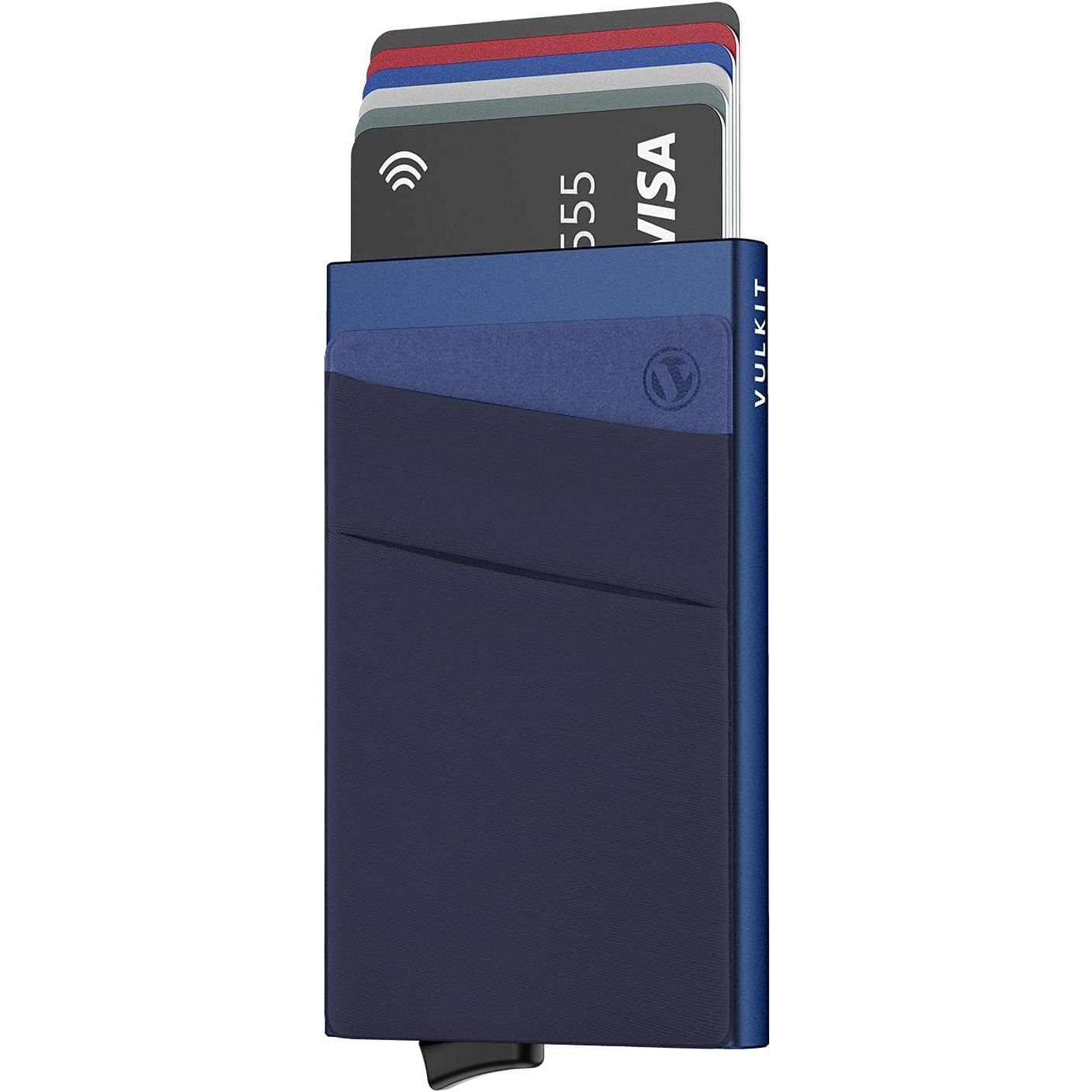 VULKIT Elegant Minimalist Card Holder Instead of a traditional bulky wallet, the slim and lightweight design brings you a new experience. Features: - Length: 10 x 6.3 x 0.8 cm. - Weight: 53 g. - Holds 5 cards Extra pocket for money. - RFID and NFC blocking - Quick access