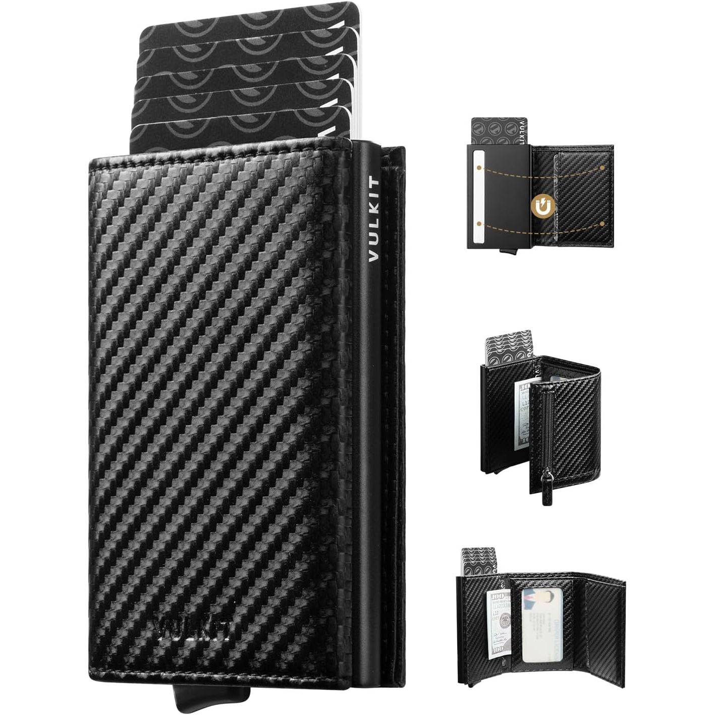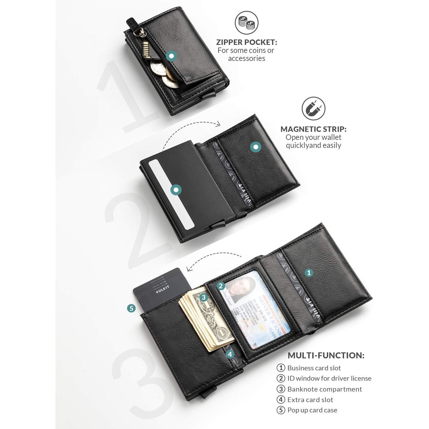 - VULKIT Pop up Wallet Minimalist Cash Wallets RFID Blocking Leather Smart Credit Card Holder with Magnetic Closure for Men