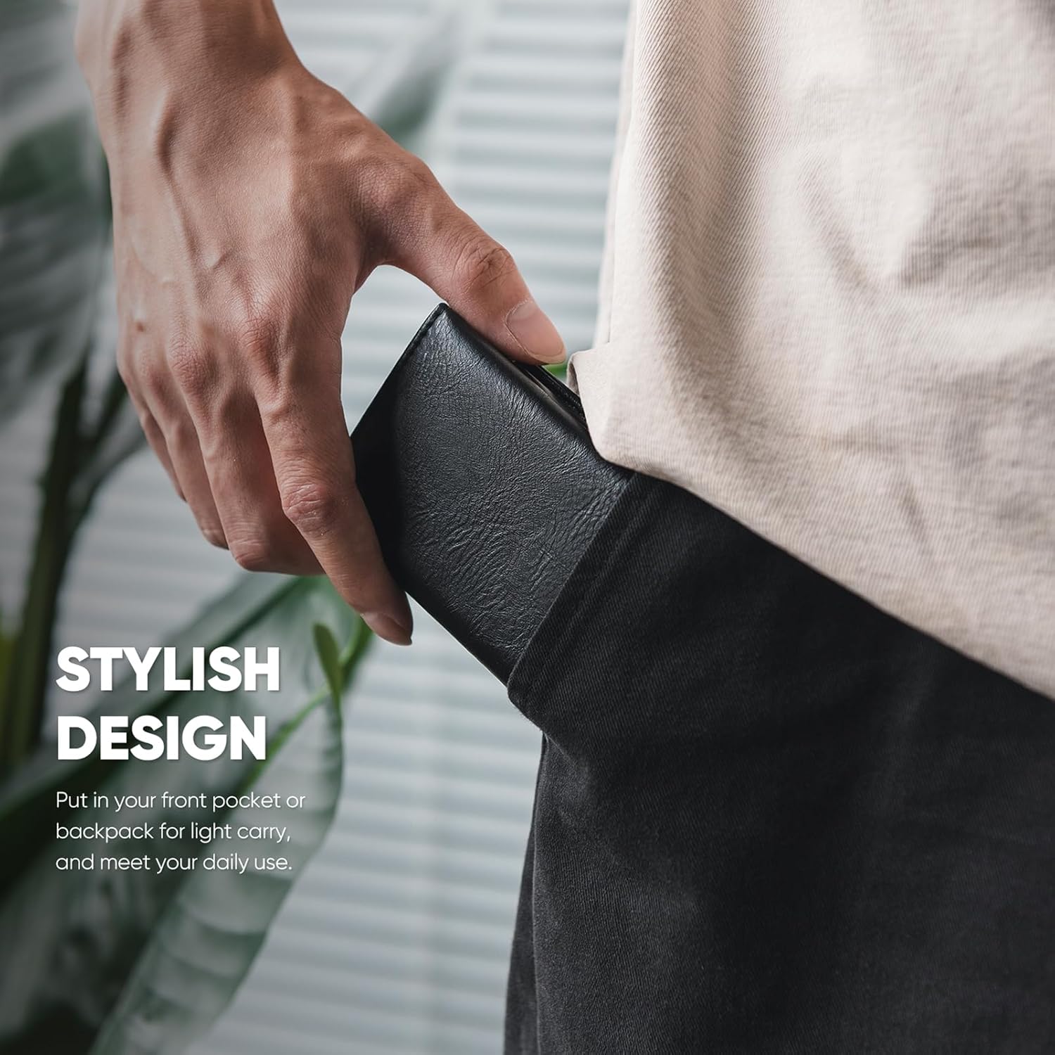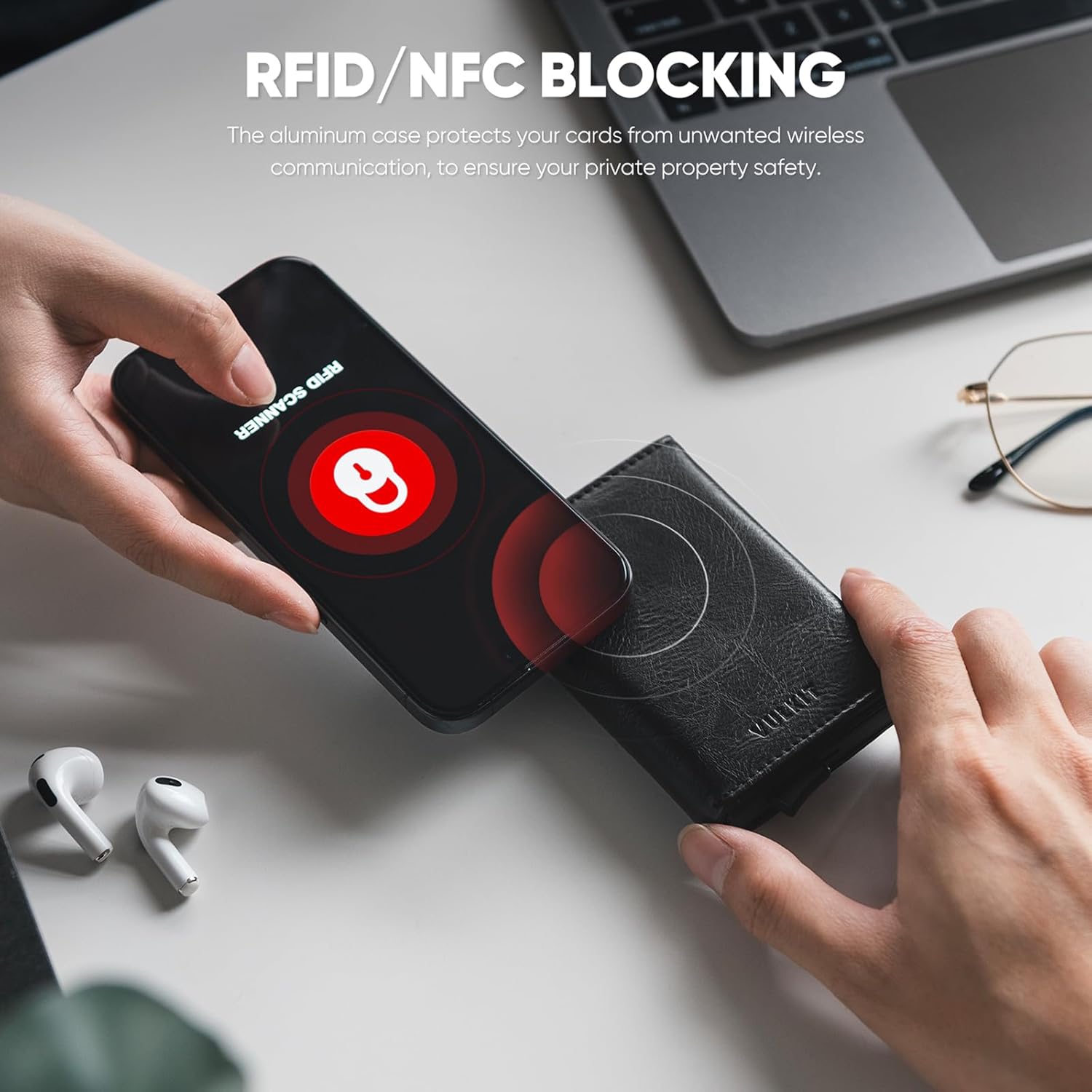 - RFID/NFC Blocking Card wallet- Integrated aluminum case protects your cards from unwanted wireless communication, keeps your private property safety.