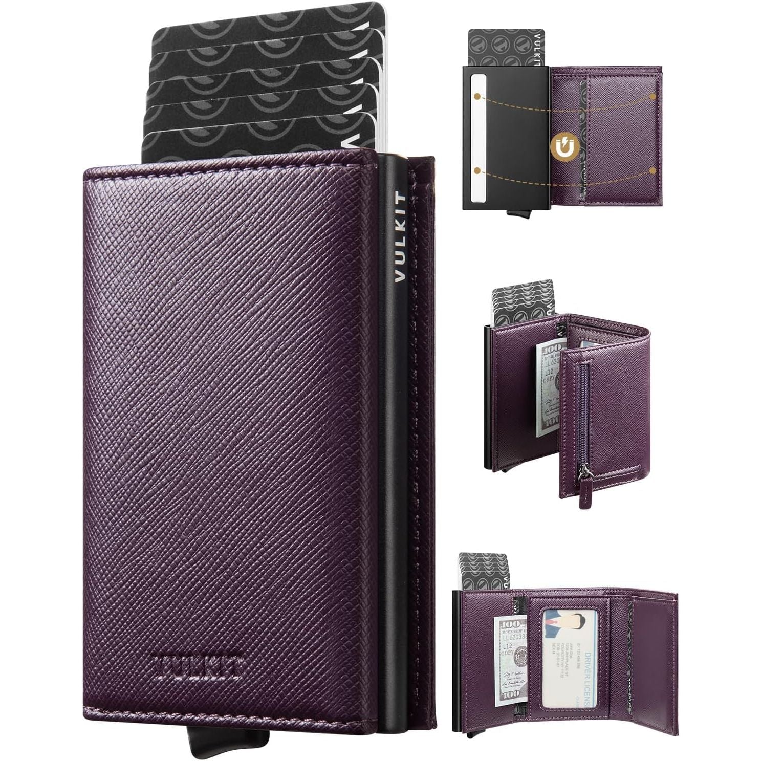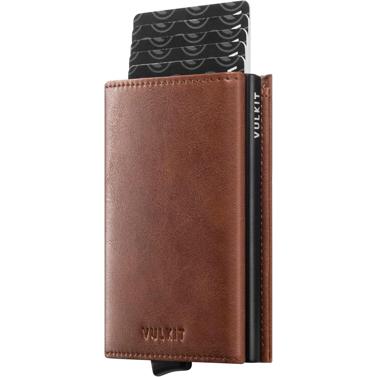 VULKIT Small Leather Wallet with Coin Pocket Redefine everyday essentials, streamline your lifestyle. FEATURES · 3.93" × 2.75" × 0.98" (10 × 7 × 2.5 cm), 3.88oz (110 g). · Is made of good quality leather · 1 pop-up credit card case · 1 ID window · 2 slots for 4 cards · 1 compartment for tickets, driver's license and coupons · RFID and NFC blocking · Quick access · Patented pop up design PACKAGING INCLUDED 1 × VULKIT Mini Leather Wallet 1 × VULKIT Gift Box