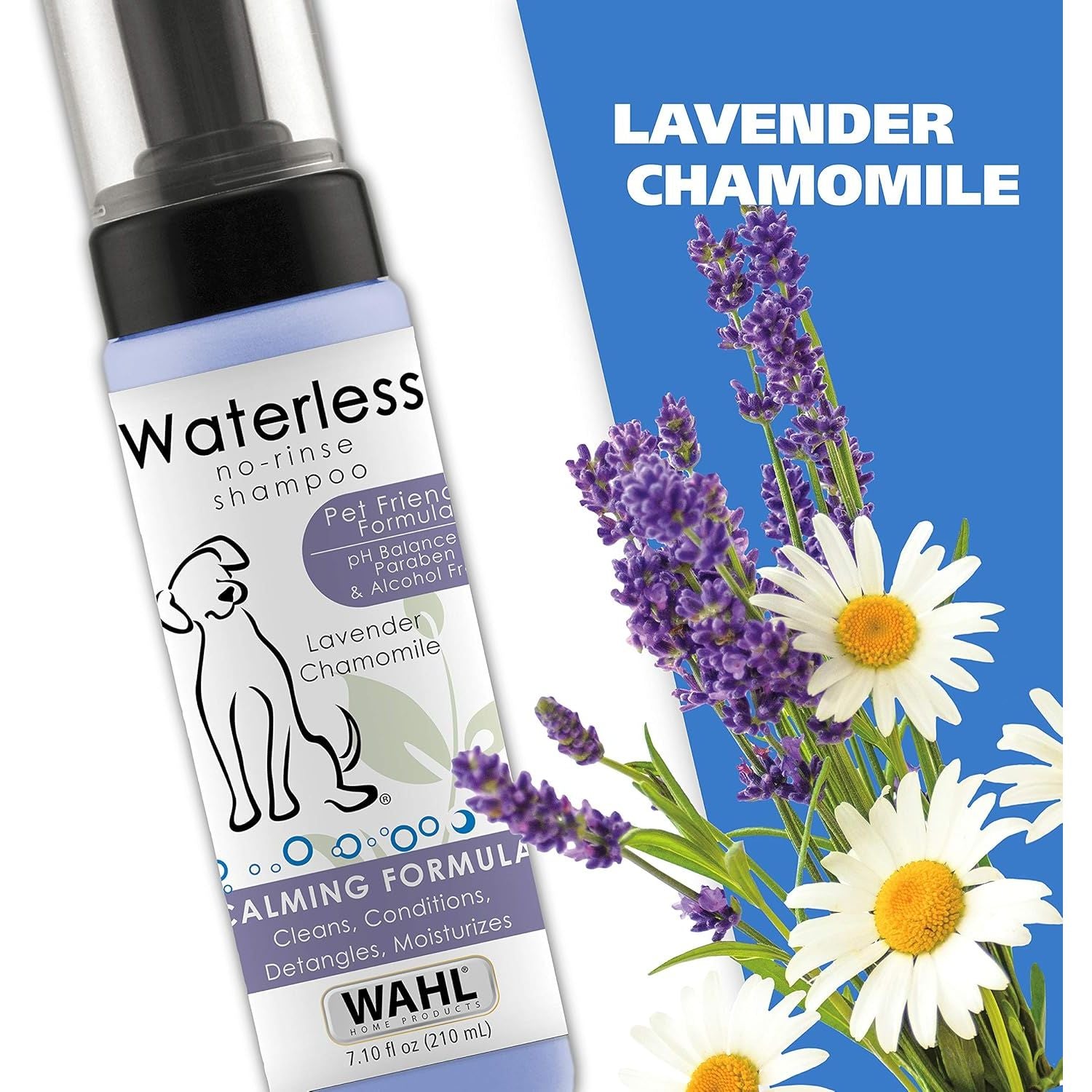 - Wahl USA Pet Friendly Waterless No Rinse Shampoo for Animals – Lavender & Chamomile Scented - Cleaning, Conditioning, Detangling, & Moisturizing Shampoo for Dogs – 7.1 Oz - Model 820014A