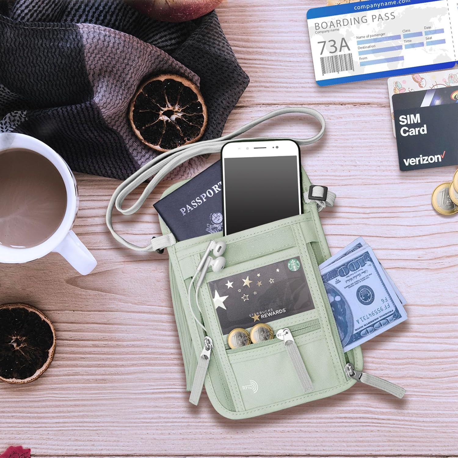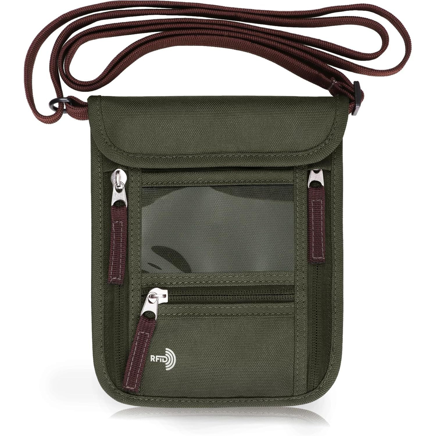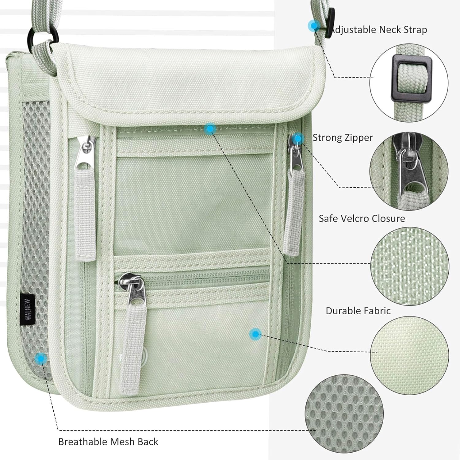 - WALNEW Passport Holder Neck Pouch Travel Wallet for Women and Men, RFID Blocking Security Slim Traveling Wallet with Around Neck Lanyard Strap