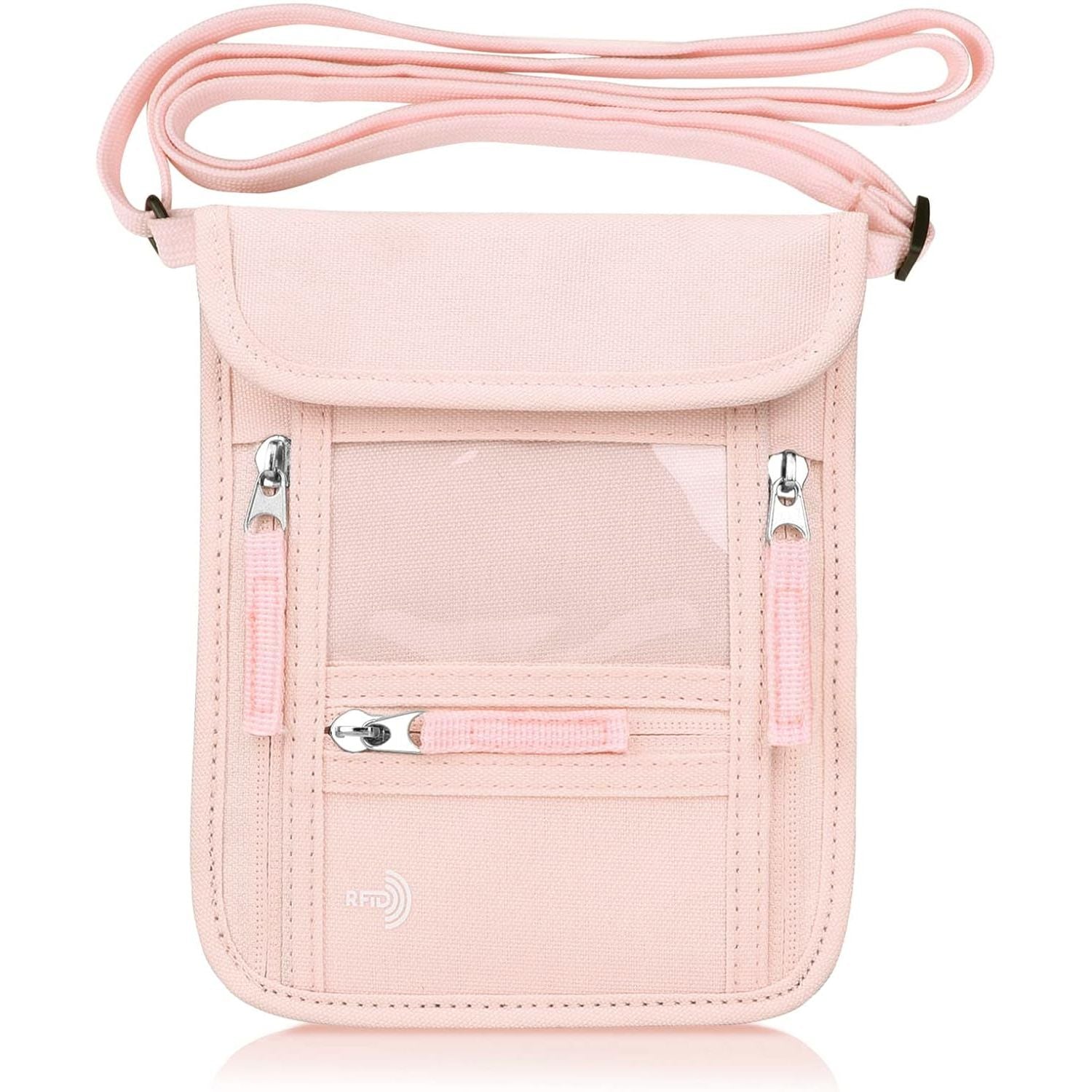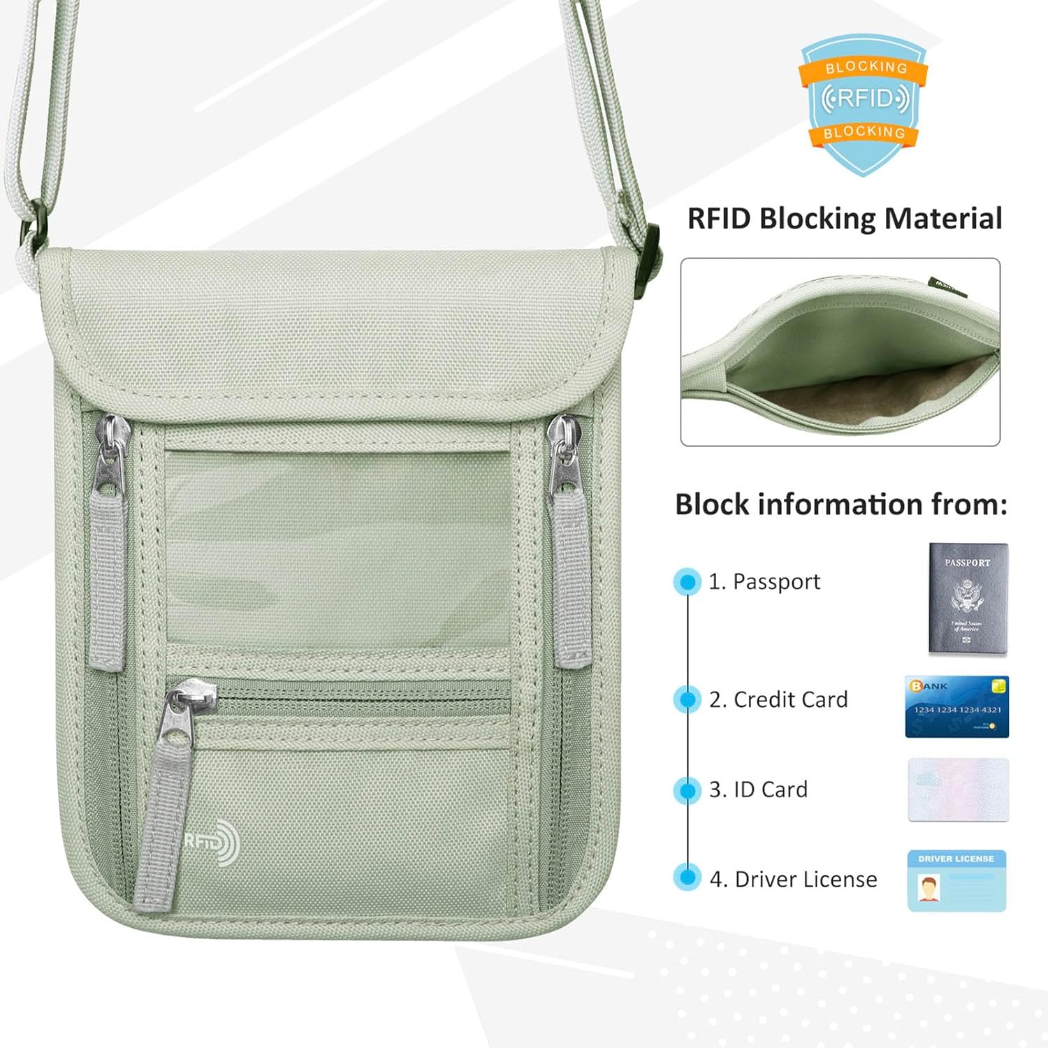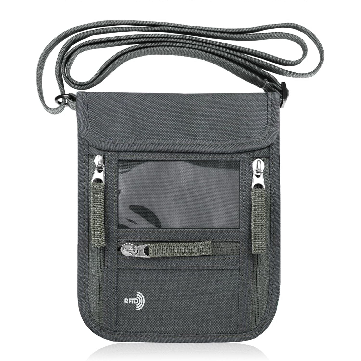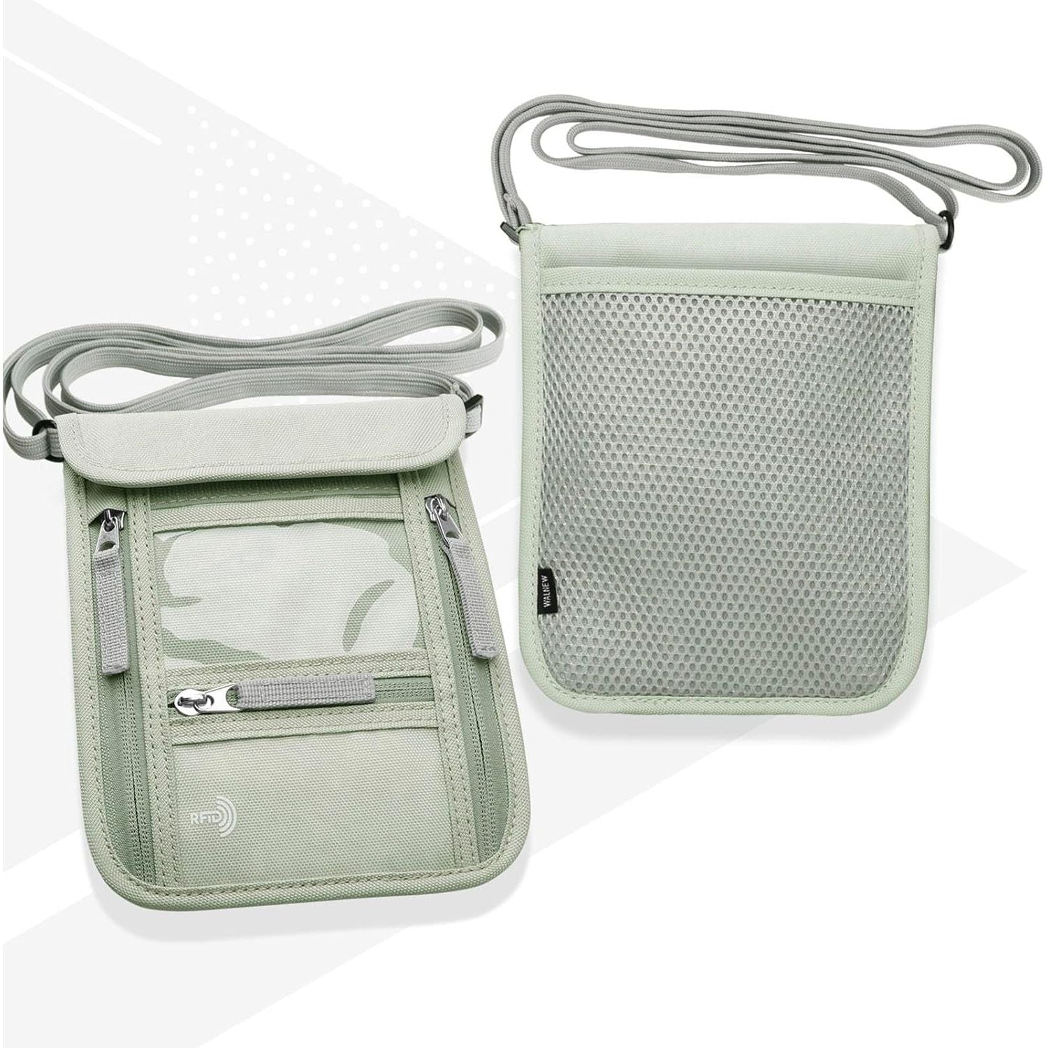 - WALNEW Passport Holder Neck Pouch Travel Wallet for Women and Men, RFID Blocking Security Slim Traveling Wallet with Around Neck Lanyard Strap