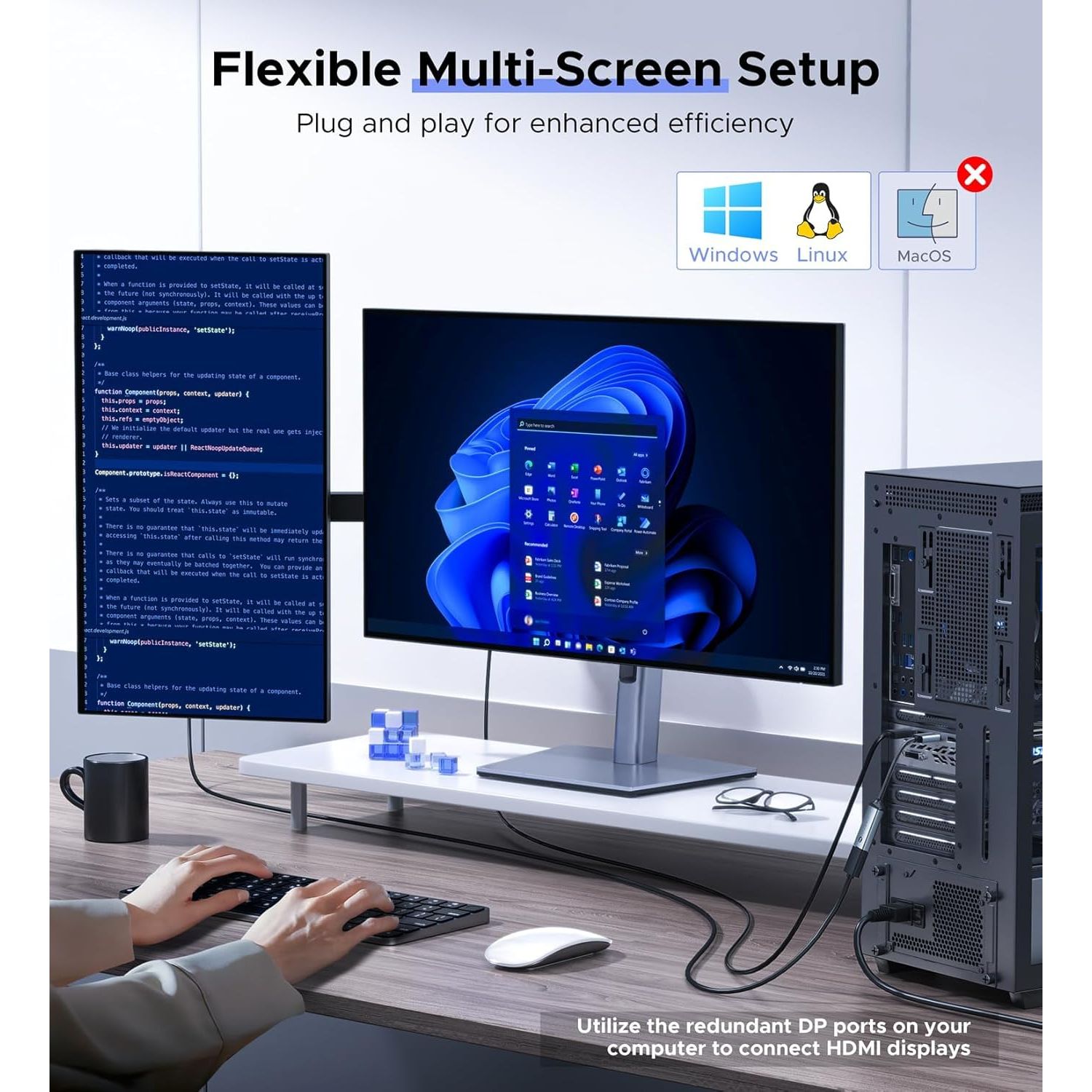 - [Universal Compatibility] For home office, late-night gaming or movie session, you can trust this 4K DP to HDMI adaptor that is compatible with various laptops, desktop tower, GPU and other devices with a DisplayPort. Connect to TV, projector, monitor, VR headset, etc. Note: It is a PASSIVE uni-directional adapter, only converting FROM DP source TO HDMI display. Not Compatible with MacBook and MacOS.