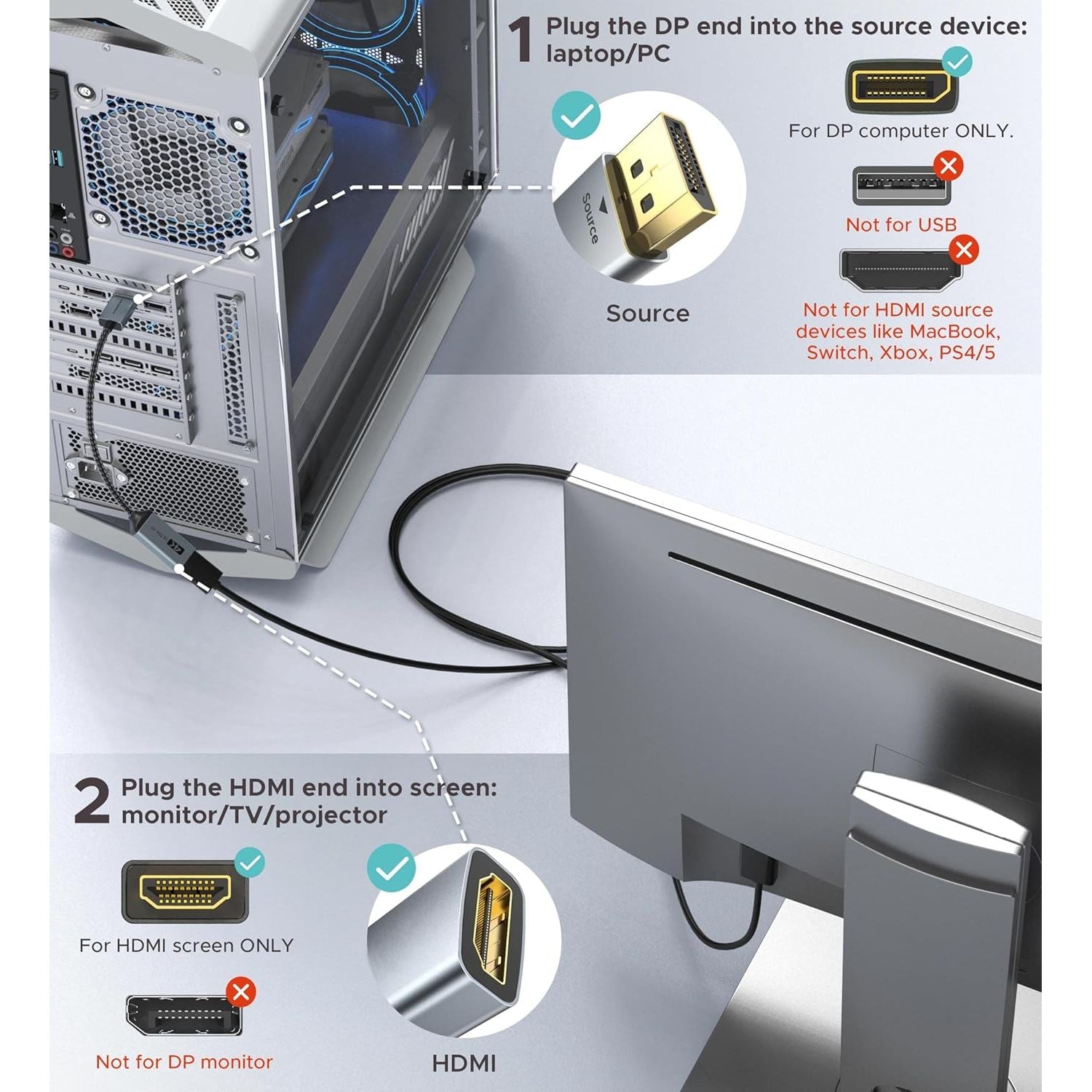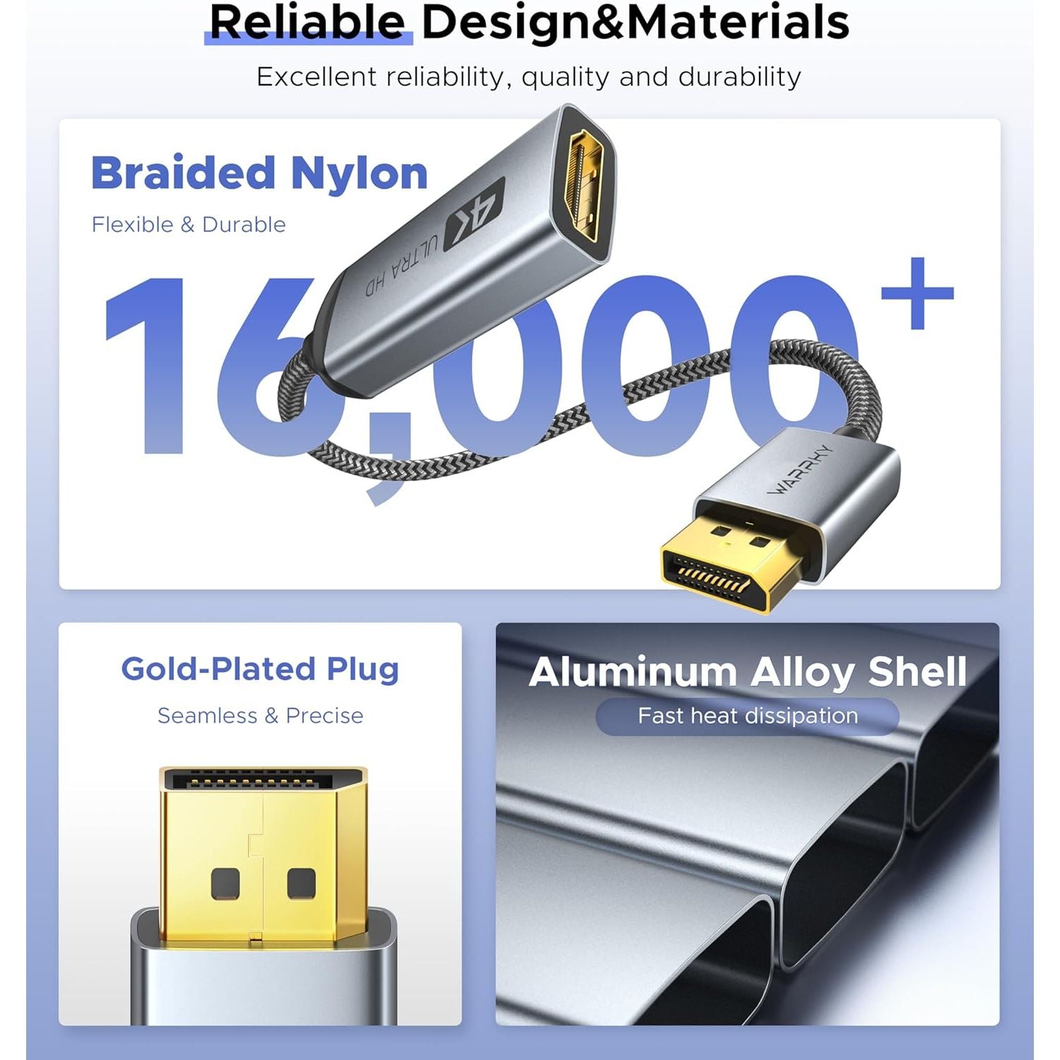 - [Built to last] Robust gold-plated pins, durable aluminum casing, 28+32AWG stranded copper wire, and resilient braided nylon jacket make it corrosion-resistant and interference-free. This DisplayPort to HDMI adapter provides maximum strength against twisting and damage for chronic everyday use. A sagacious choice for lasting reliability.