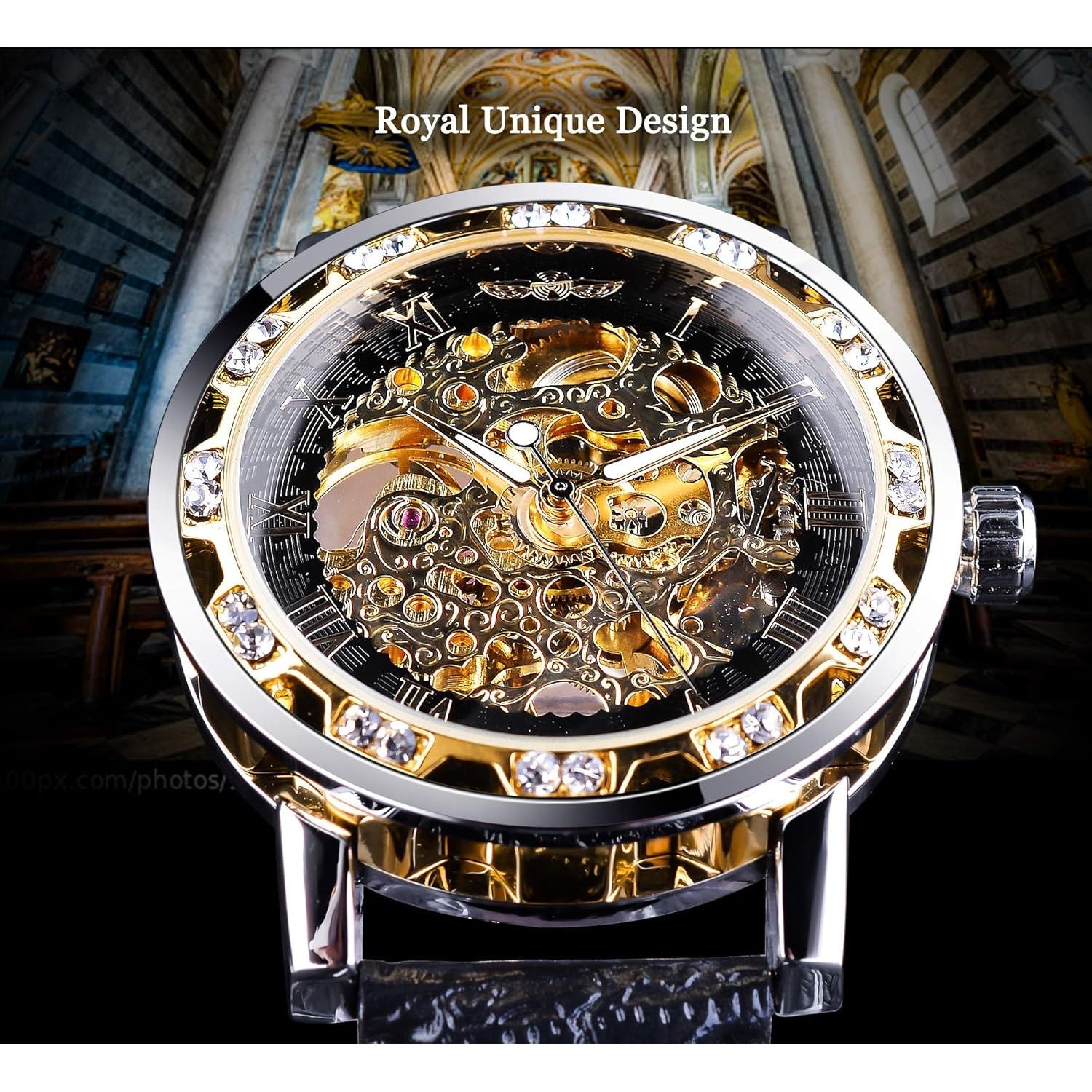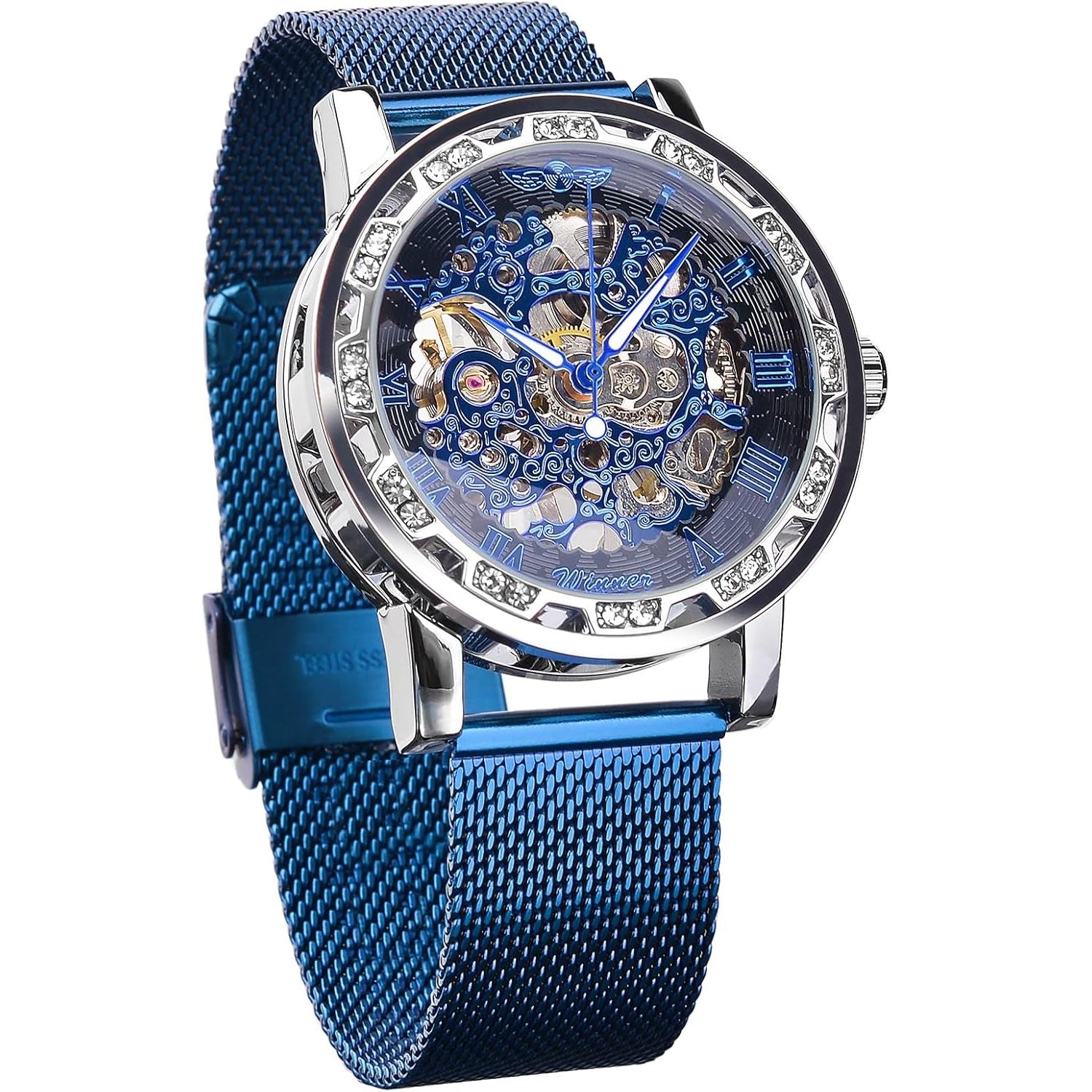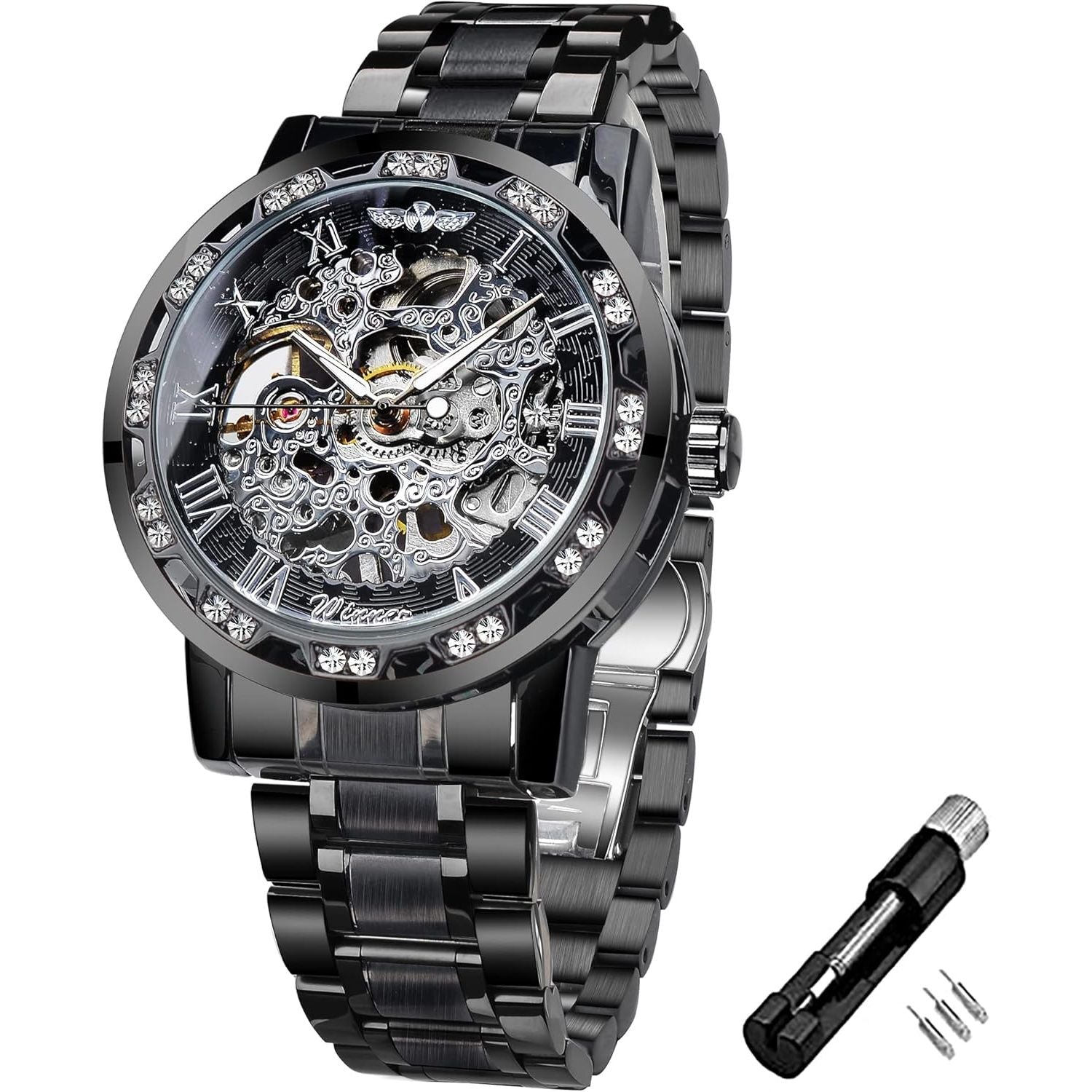 - Winner Retro Manual Mechanical Skeleton Watch with Diamond and Carving Flower Craft Men Skeleton Wrist Watch Mechanical Classic Roman Number
