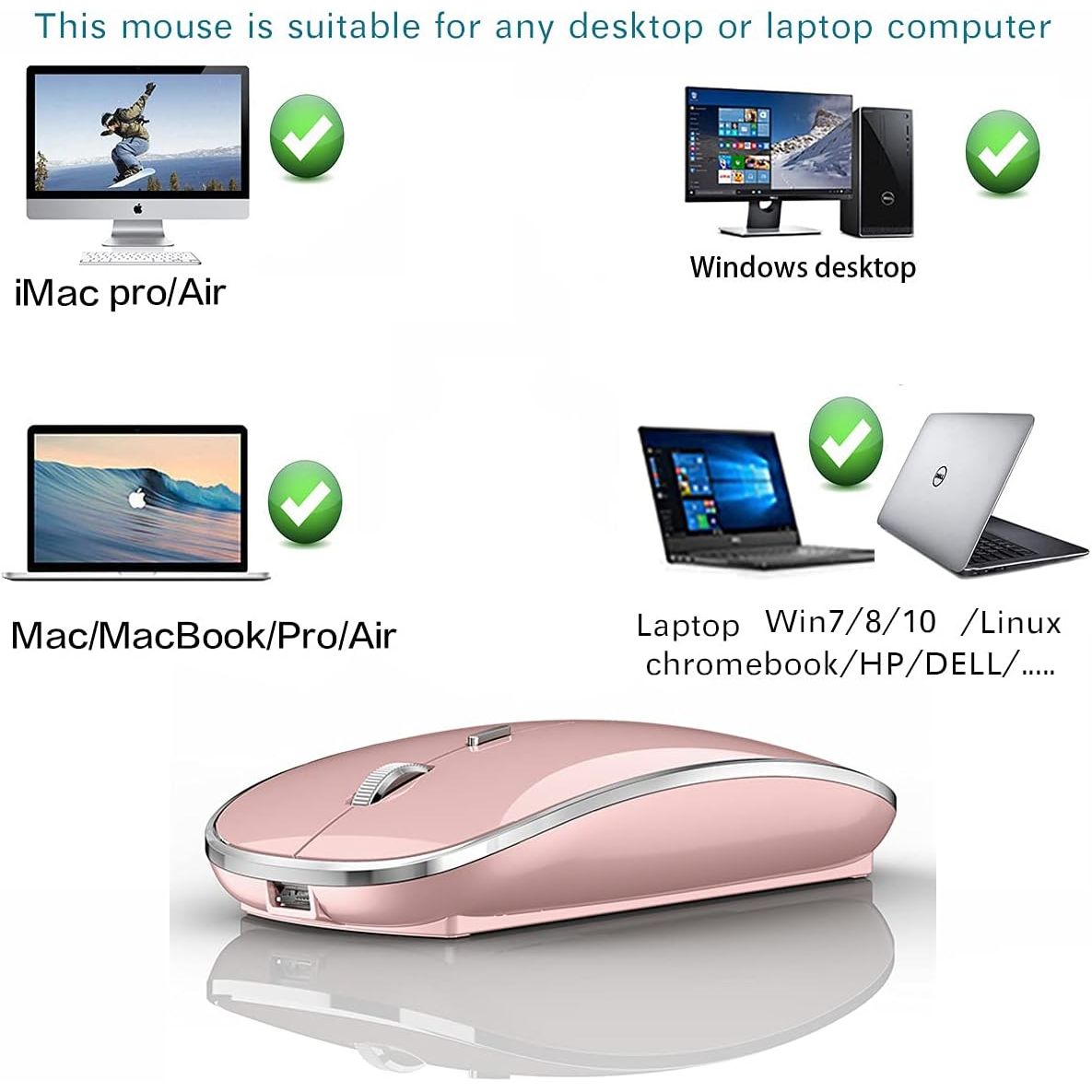 - Wireless Mouse for MacBook Pro MacBook Air MacBook Laptop Mac iMac Desktop Computer Chromebook Win7/8/10/11 PC HP Dell Laptop 2.4 USB/USB C Mouse (Rose Gold)