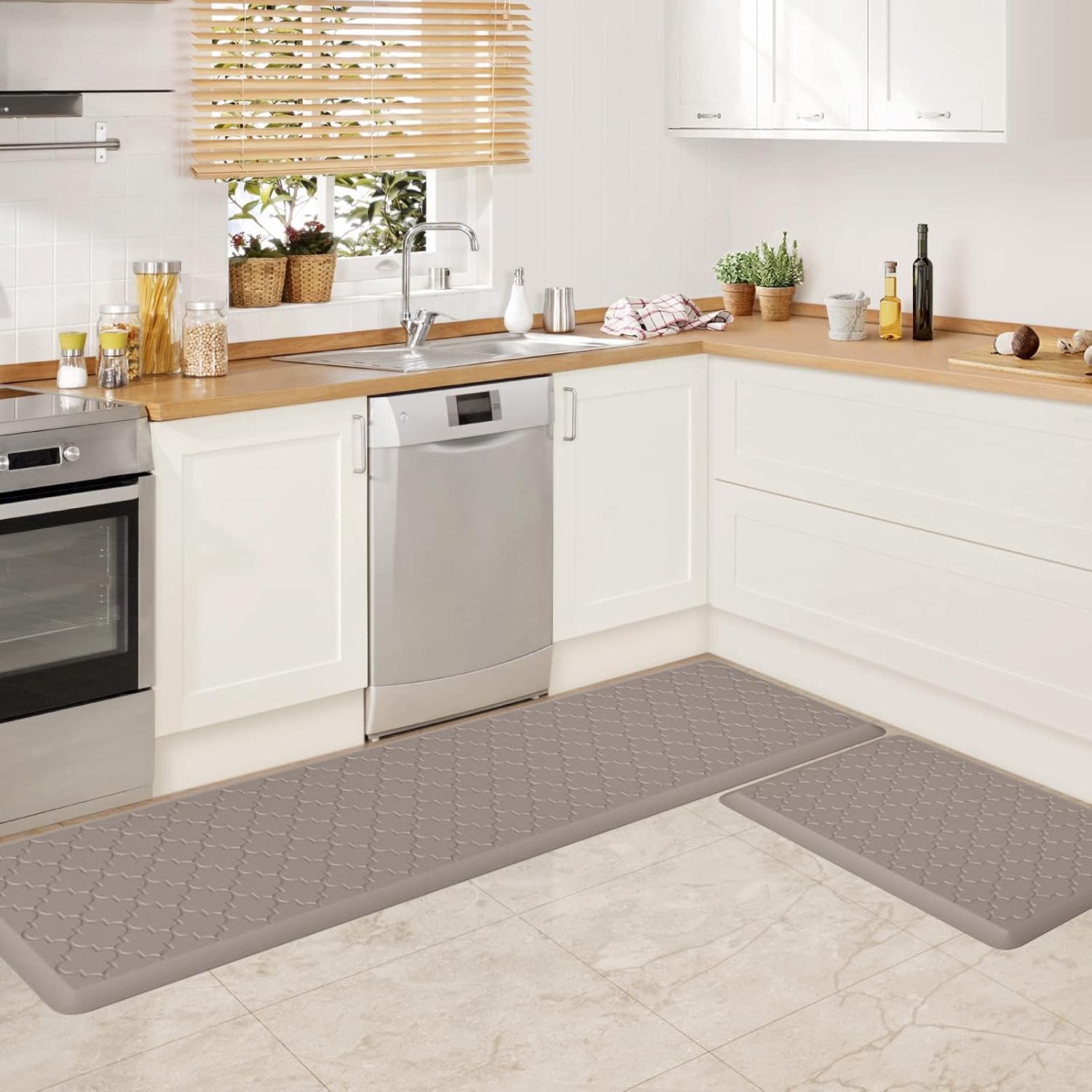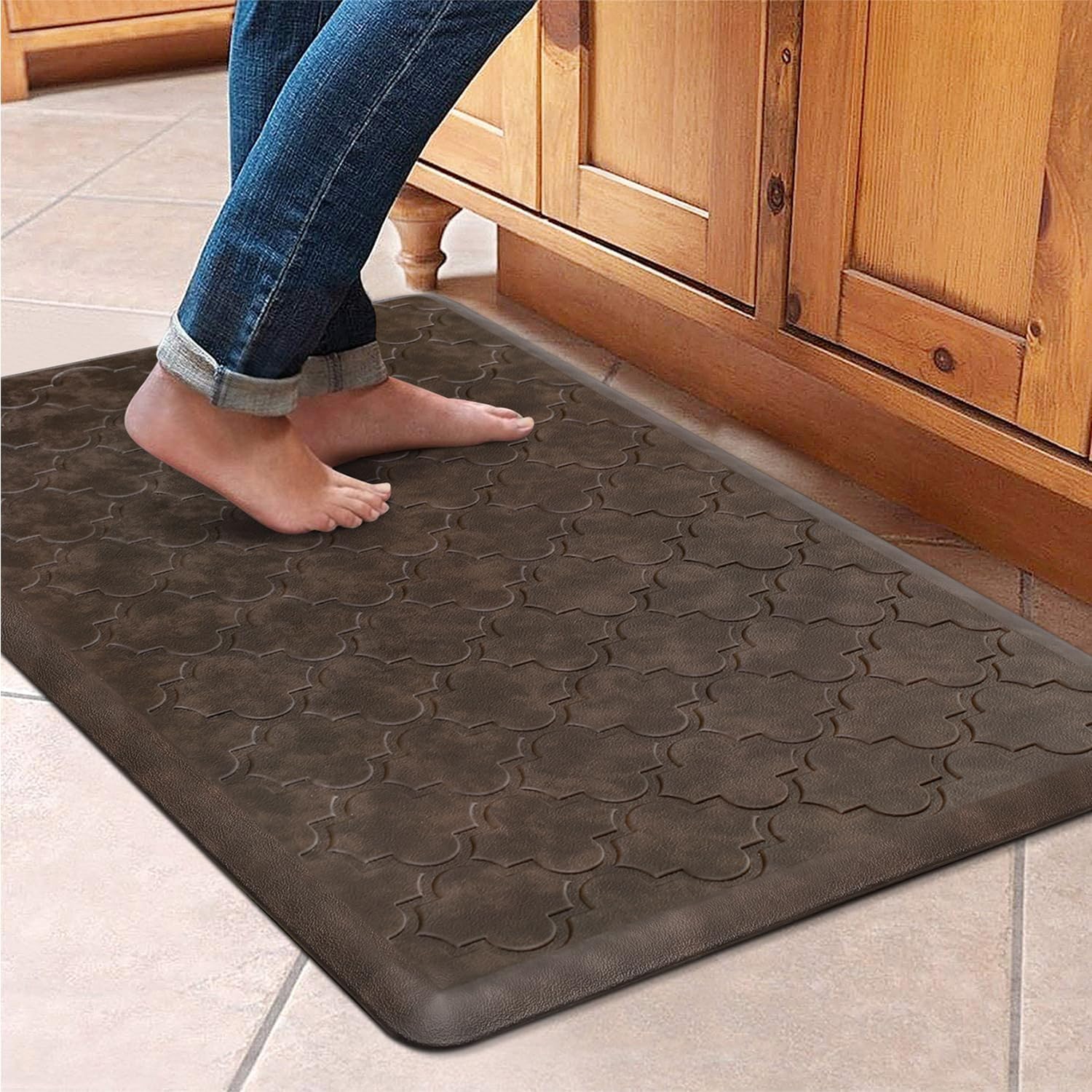 - WISELIFE Kitchen Mat Cushioned Anti Fatigue Floor Mat,17.3"x60", Thick Non Slip Waterproof Kitchen Rugs and Mats, Standing Mat for Floor,Home,Office,Desk,Sink, Brown