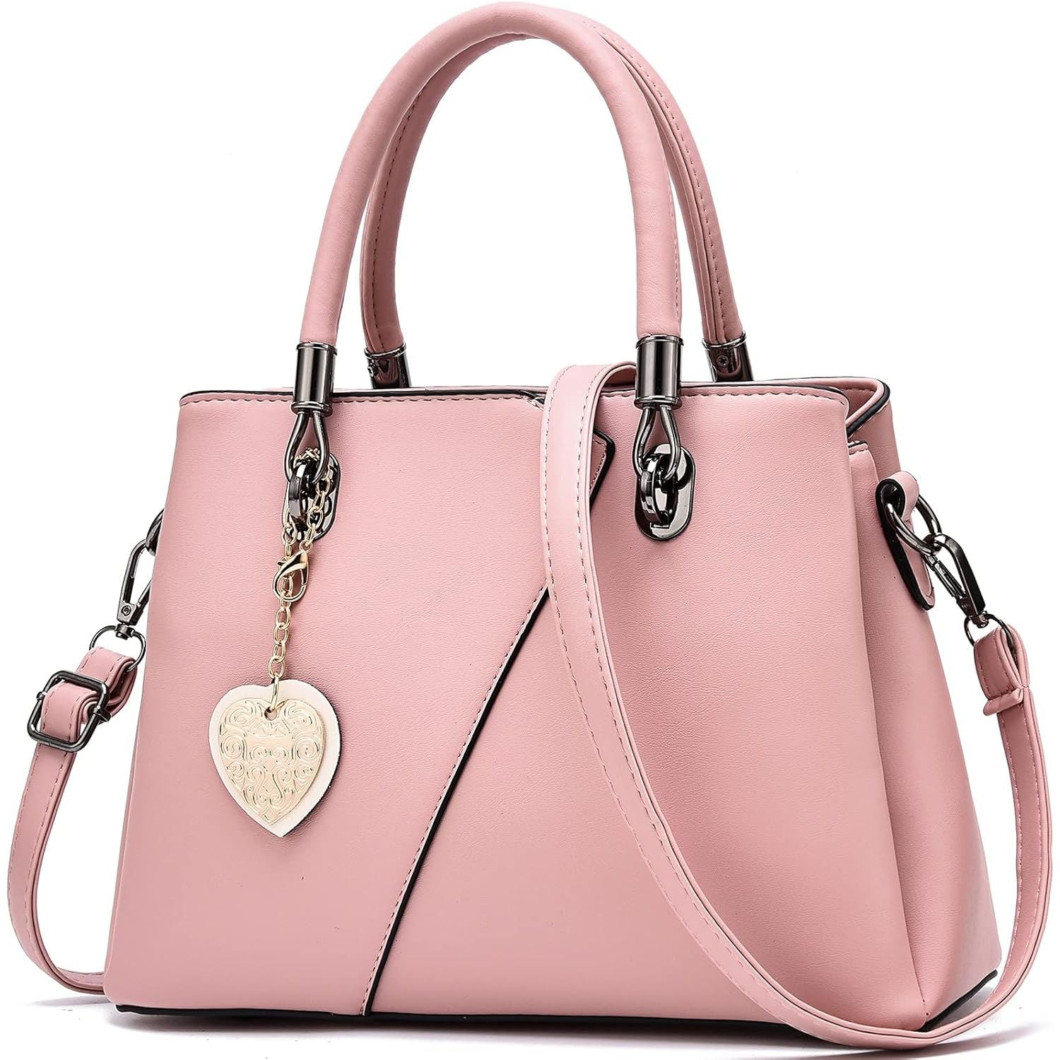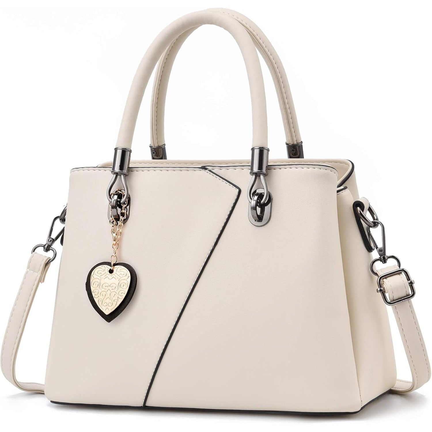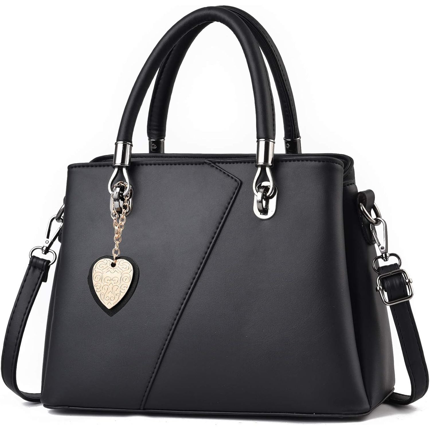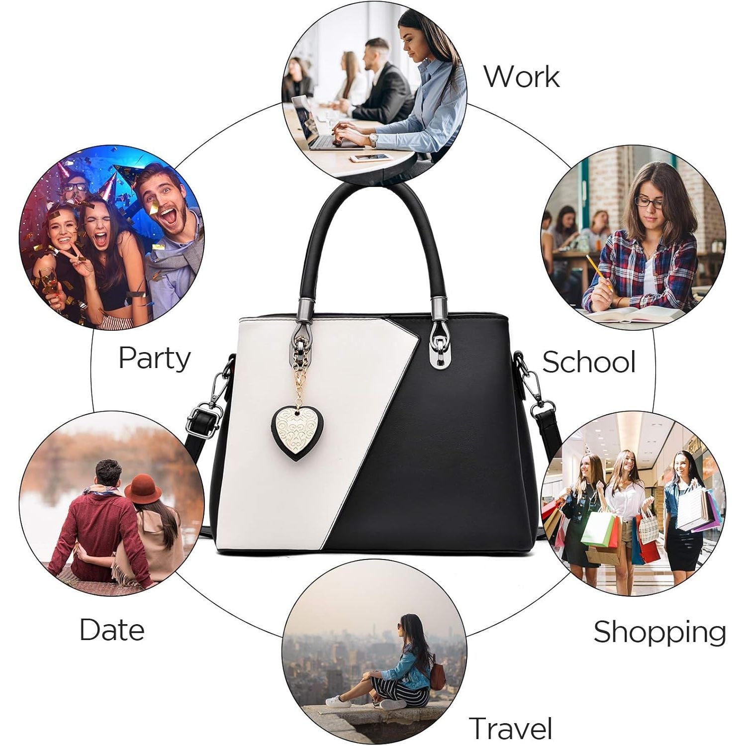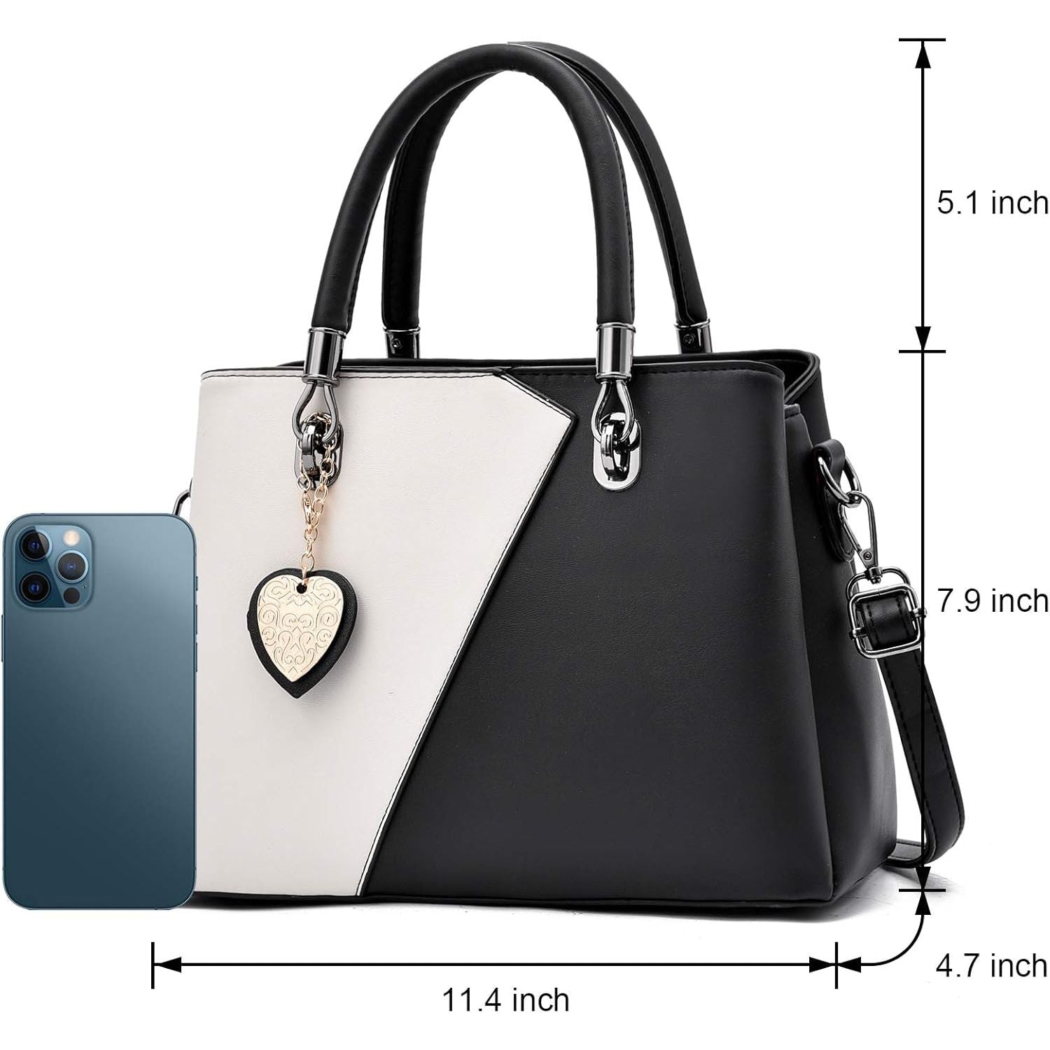 - Womens Leather Handbags Purse Top-handle Bags Contrast Color Stitching Totes Satchel Shoulder Bag for Ladies
