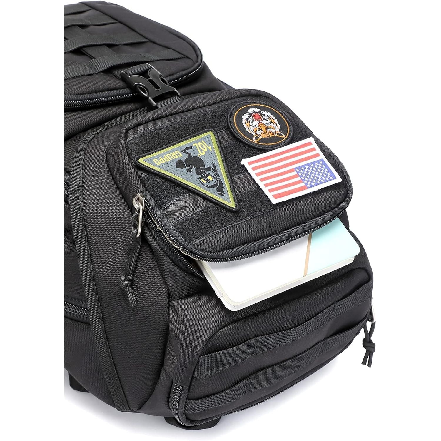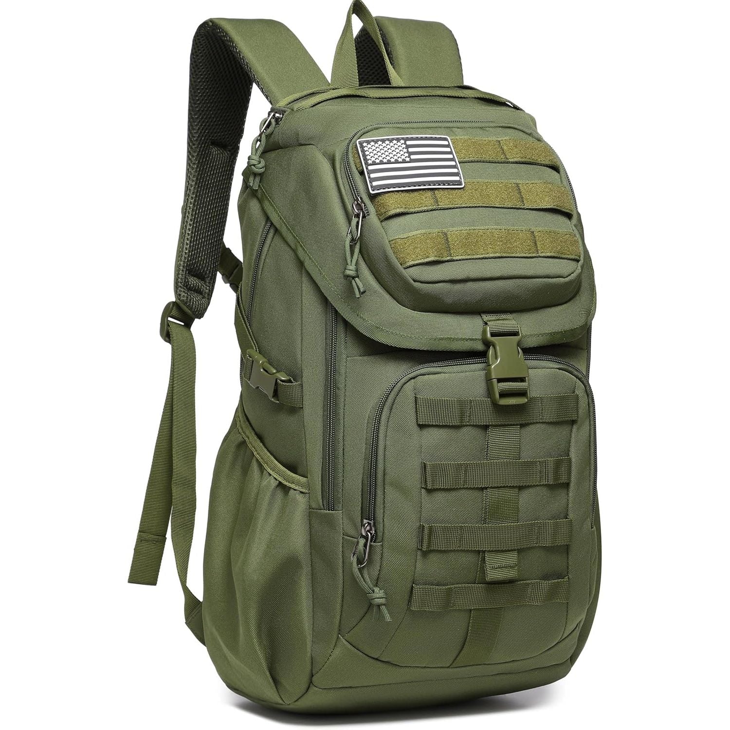 - 【Military MOLLE system】The MOLLE webbing system on the Tactical Backpack comfortably attaches to other MOLLE tactical backpacks or more. The front 3 rows of MOLLE velcro areas, front, and shoulder straps are equipped with MOLLE webbing and the shoulder straps can be used for hanging items.