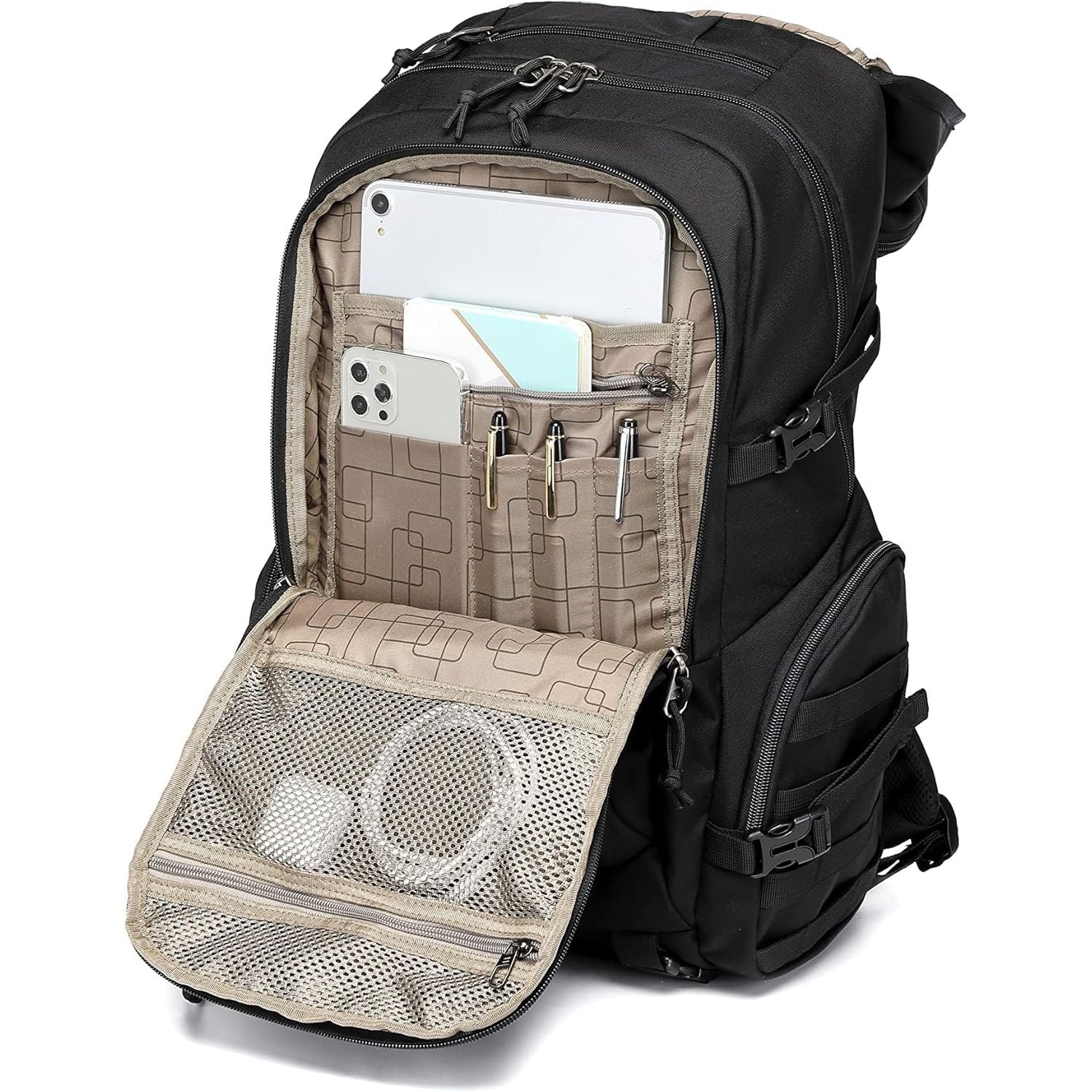 - 【Polyurethane & Nylon】Polyurethane material style is fully waterproof and has a leather-like texture that enhances the texture of the tactical backpack. Nylon material is strong and durable.