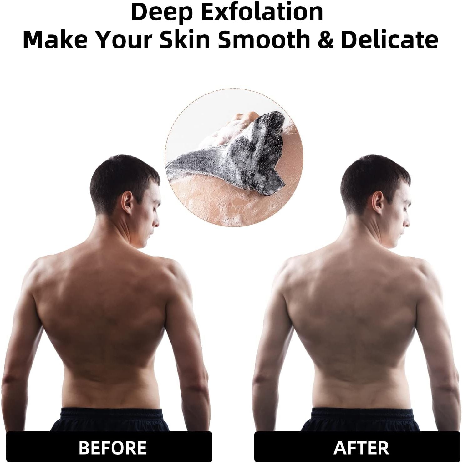 - Texture Material For Massage: Double layers of the Concave-Convex texture fabric provides gentle touch of massage when exfoliating. Our back exfoliator for shower works well eliminate oil, dirty on the skin, is the best for removing dead skin cells, stimulating blood circulation, unclogging pores bath products.