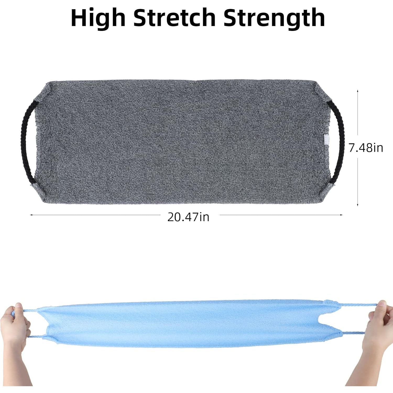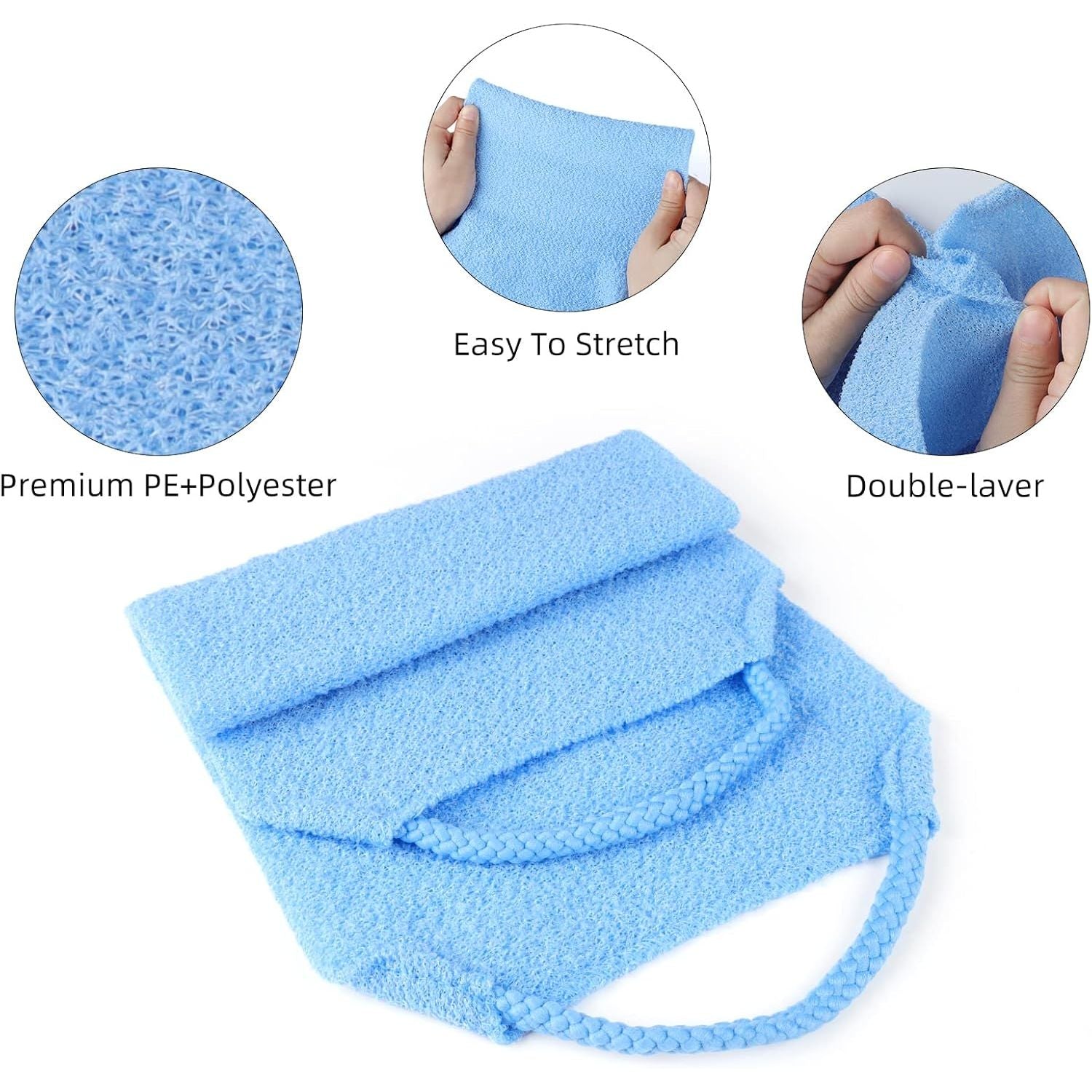 - WOVTE 2 Pack Stretchable Back Scrubber for Shower Nylon Exfoliating Washcloth Towel Back Washer with Handles Two Sides Exfoliating Body Scrubber for Men Women Shower Deep Clean Skin Massages