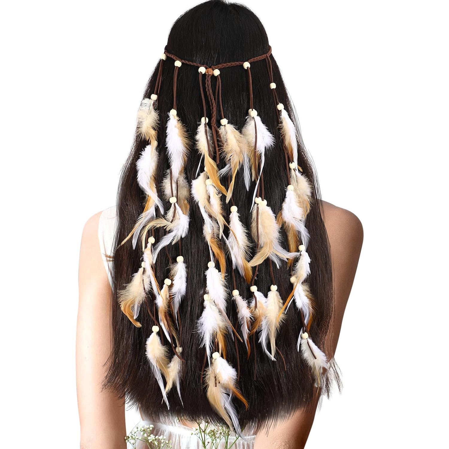 - Reliable Material: the main material of this hippie headband festival accessories is feather, wood bead, rope, lovely and charming, delicate and lightweight, comfortable to use, not easy to slide