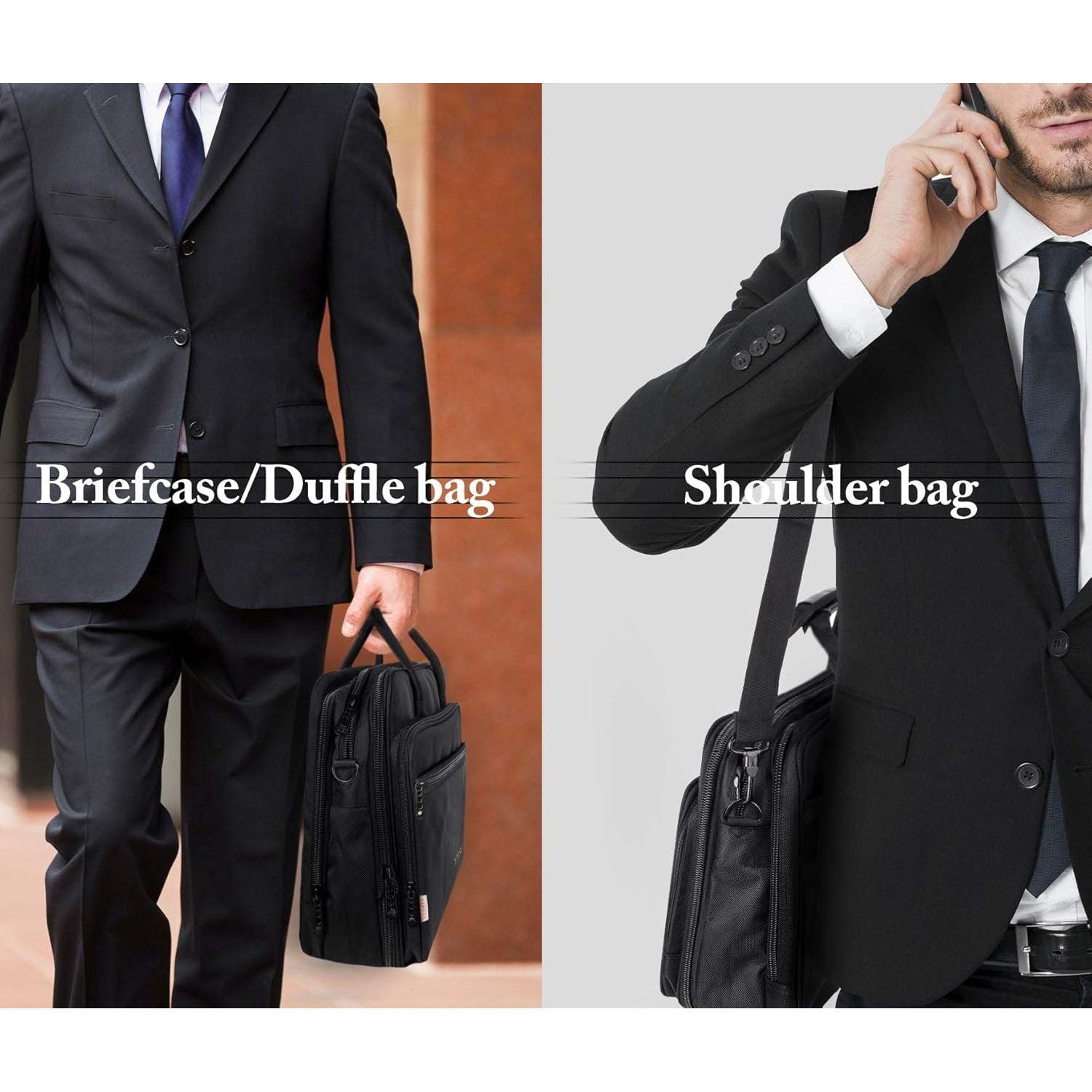 • FREE YOUR HANDS: The back compartment comes with a luggage strap, allowing the briefcase to securely fit on the handle of a rolling suitcase - ease the burden in you journey. A detachable anti-slip shoulder strap can easily convert your men's briefcase to a shoulder bag or a messenger bag, while the padded pad can reduce the pressure of shoulder