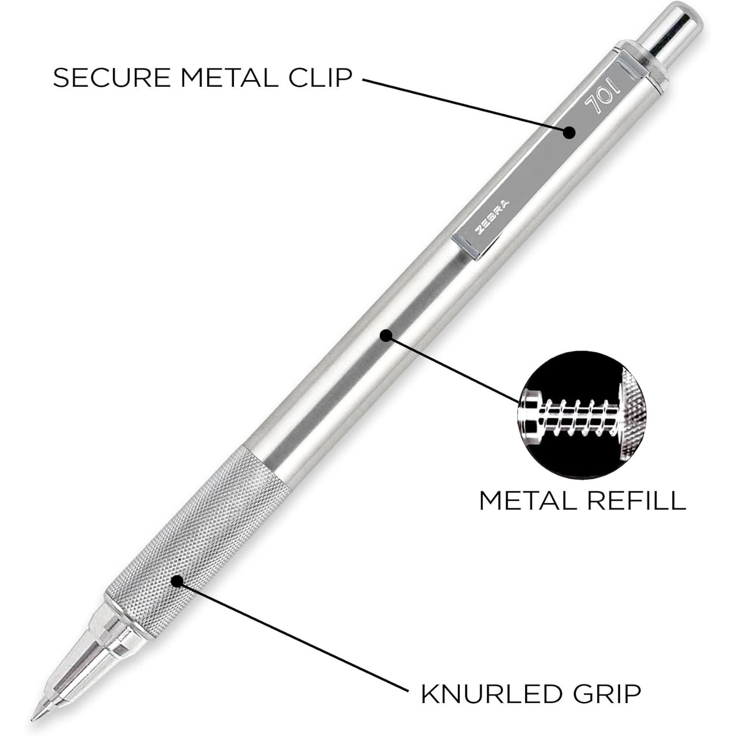 - Zebra Pen F-701 Retractable Ballpoint Pen, 0.8mm Fine Point, Stainless Steel Barrel, Ideal for Office Supplies, School Supplies & Teacher Supplies, Black Ink, 1-Pack (29411)