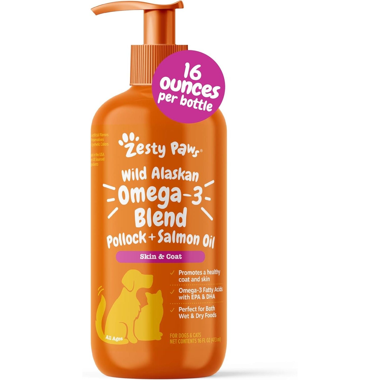 - Zesty Paws Wild Alaskan Salmon Oil for Dogs & Cats - Omega 3 Skin & Coat Support - Natural EPA & DHA, Fatty Acids for Joint Function, Immune & Heart Health Liquid Food Supplement, 32 oz