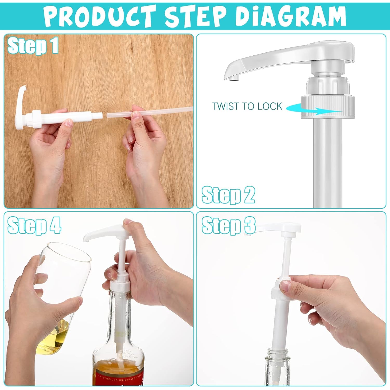 - Easy to use: these syrup pumps are easy to open and lock, you just need to gently press them, they will spray out, you can lock it after use to ensure that the internal liquid will not overflow and mess counter-tops or stick the bottles, also easy to clean
